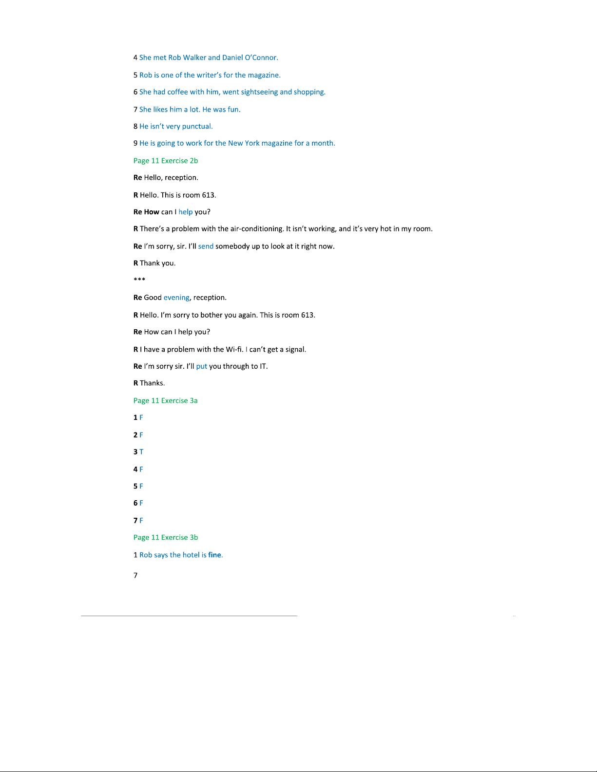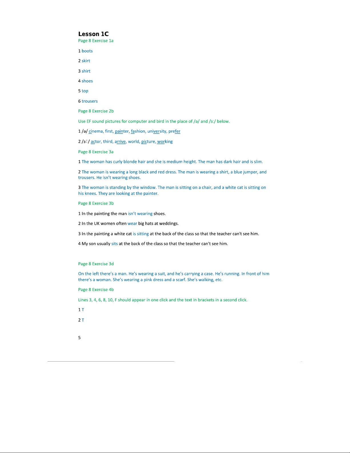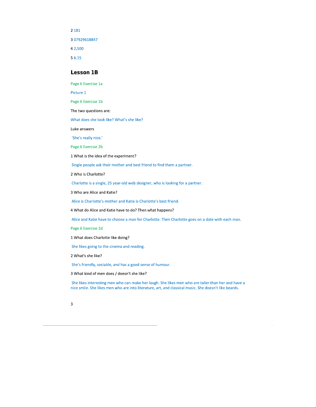 Answer Keys for English File Pre-Intermediate Students B (Lessons 1-3)