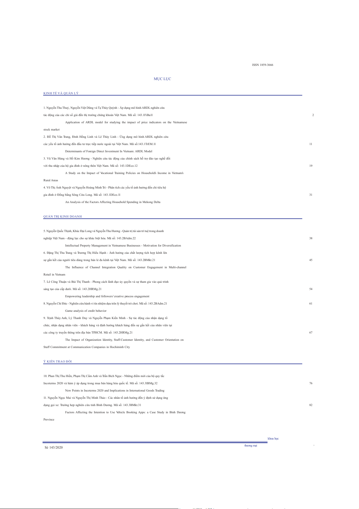 ISSN 1859-3666 MỤC LỤC KINH TẾ VÀ QUẢN LÝ