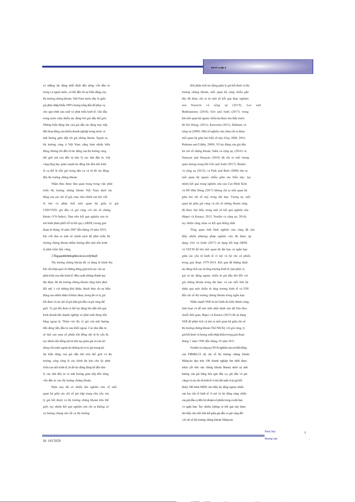 Từ khóa: Lợi tức chứng khoán, tỷ giá hối đoái, giá dầu thô, giá vàng 1. Giới thiệu chung