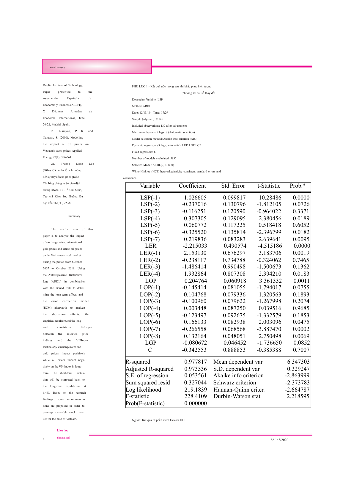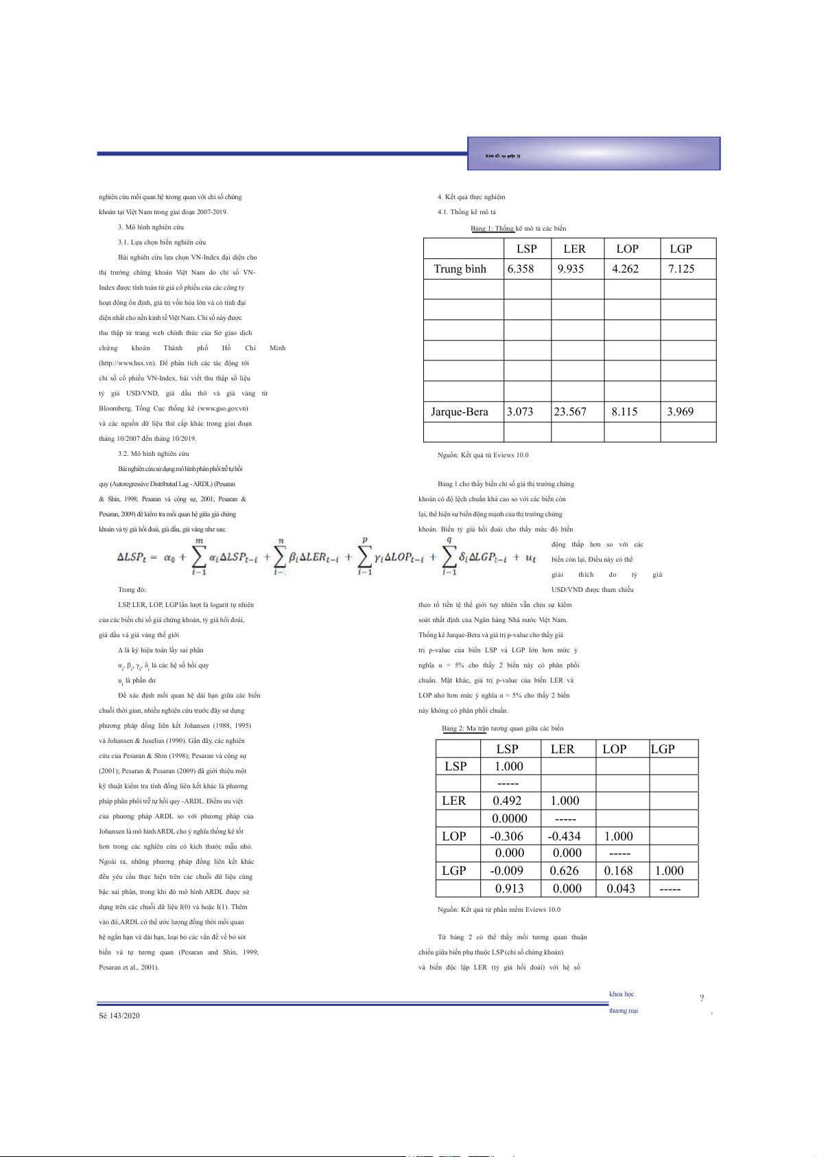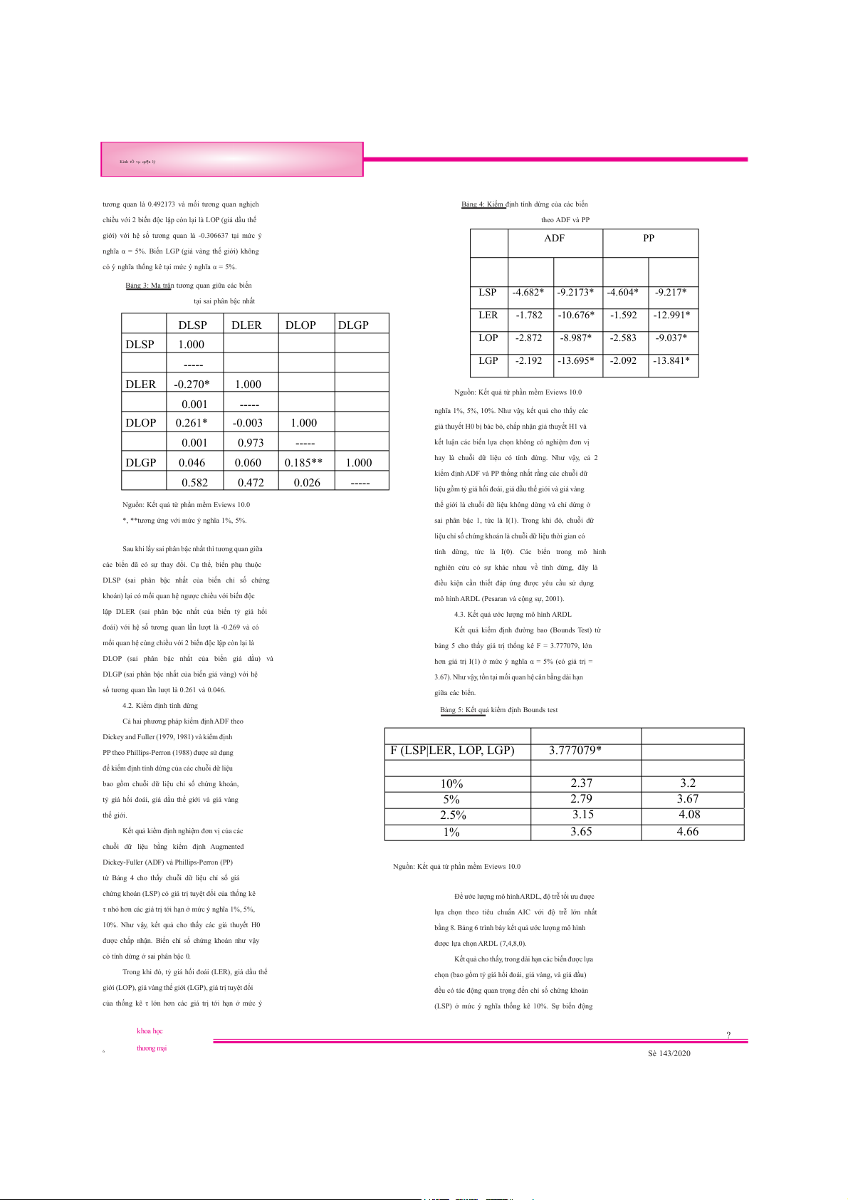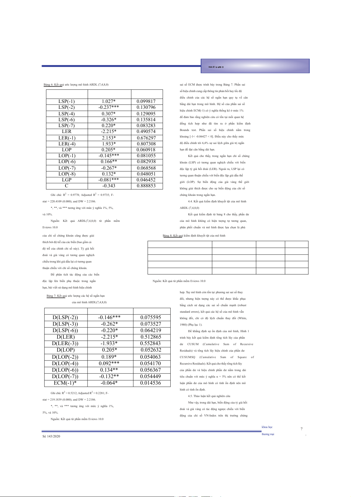 Nguồn: Kết quả từ phần mềm Eviews 10.0 khoa học thương mại 10 Sè 143/2020