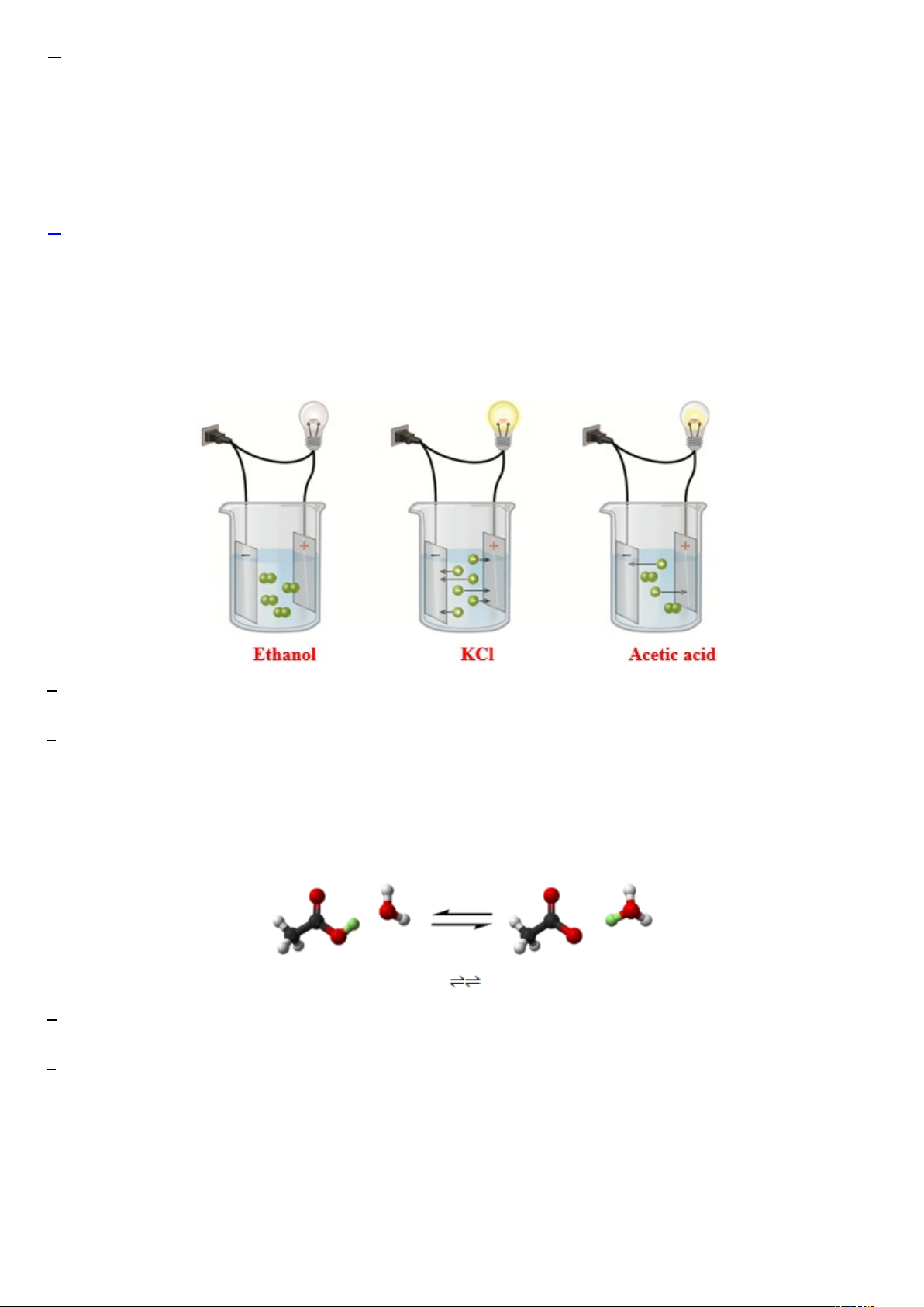 Câu 1. Thực hiện thí nghiệm với 3 chất tan khác nhau là ethanol, potassium chloride và acid acetic như hình dưới đây.