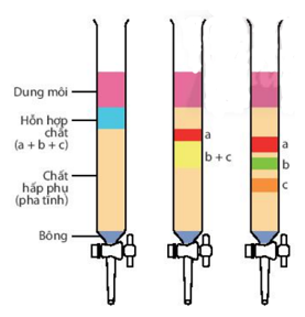 c. Hình mô phỏng thí nghiệm phương pháp sắc kí cột.