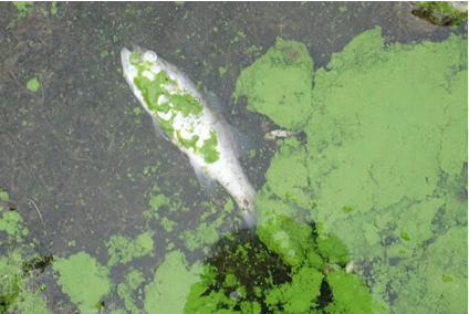 Câu 5: Đặc điểm dễ dàng nhận biết hiện tượng phú dưỡng ở các ao hồ là