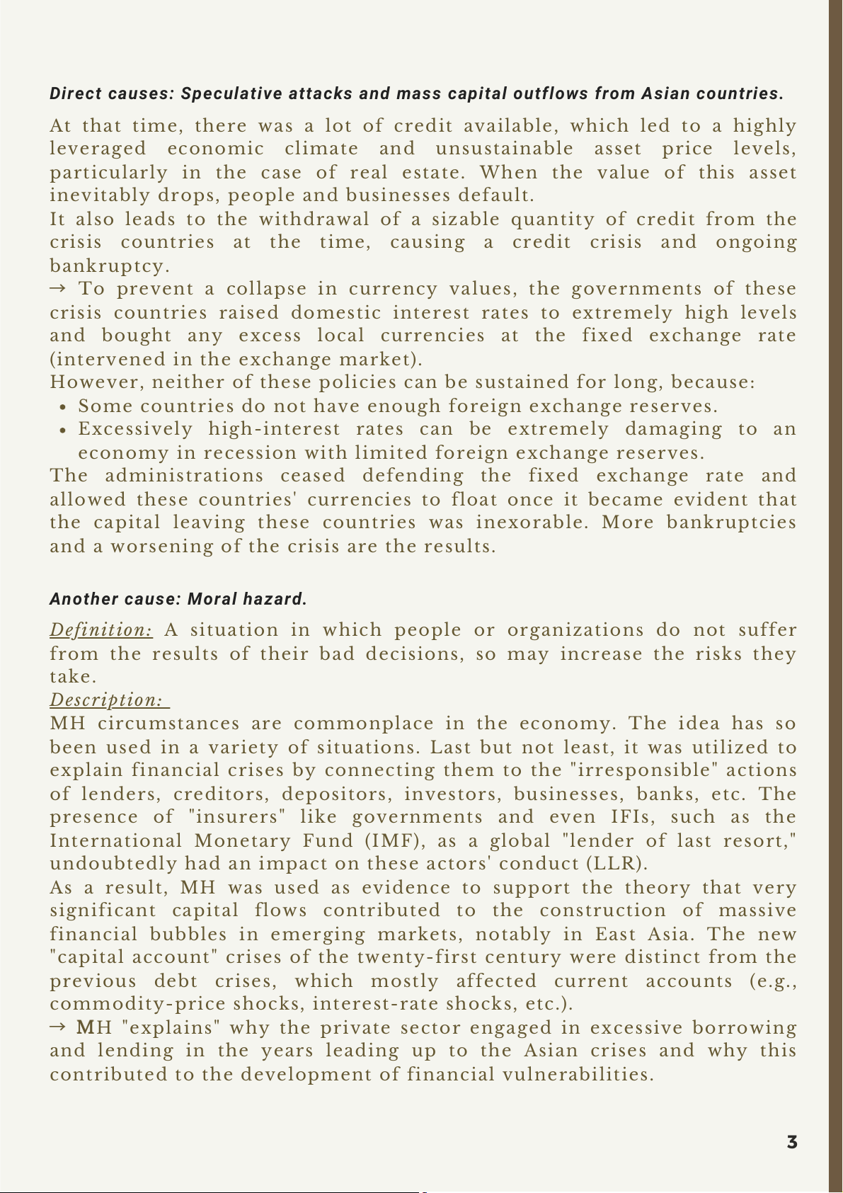 Direct causes: Speculative attacks and mass capital outflows from Asian countries.