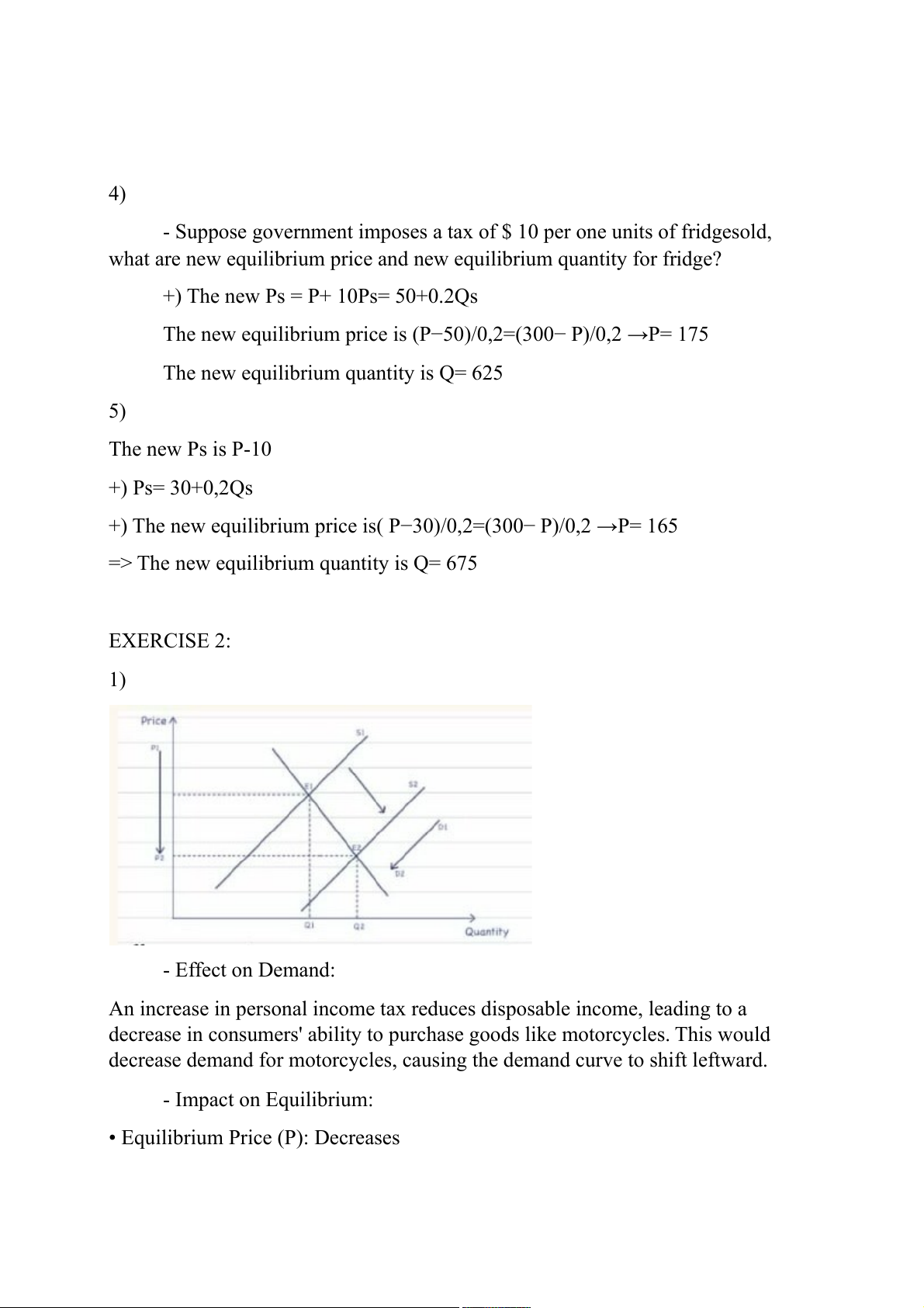 => The new equilibrium quantity is Q= 675 EXERCISE 2: 1) - Effect on Demand:
