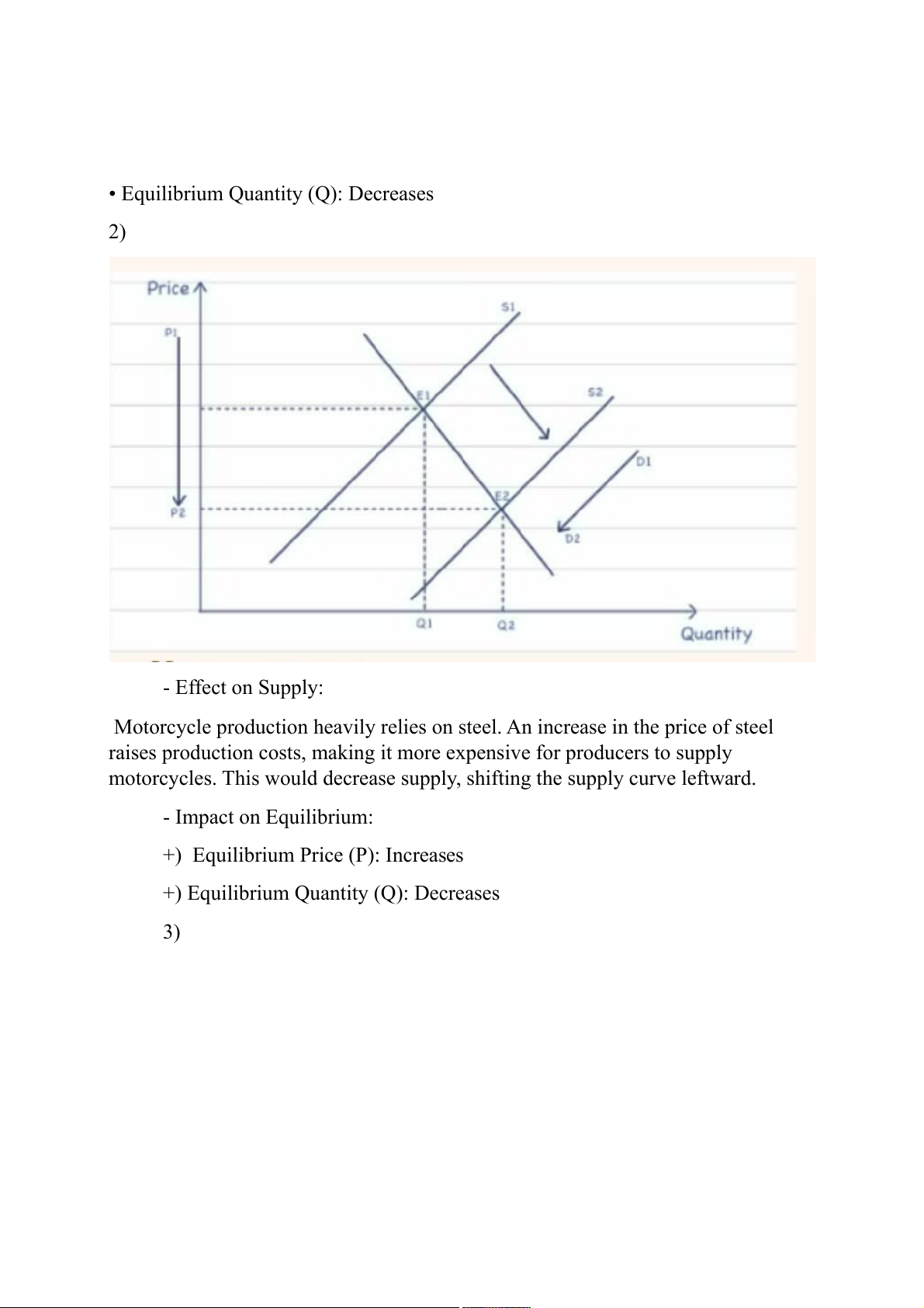 +) Equilibrium Quantity (Q): Decreases 3)