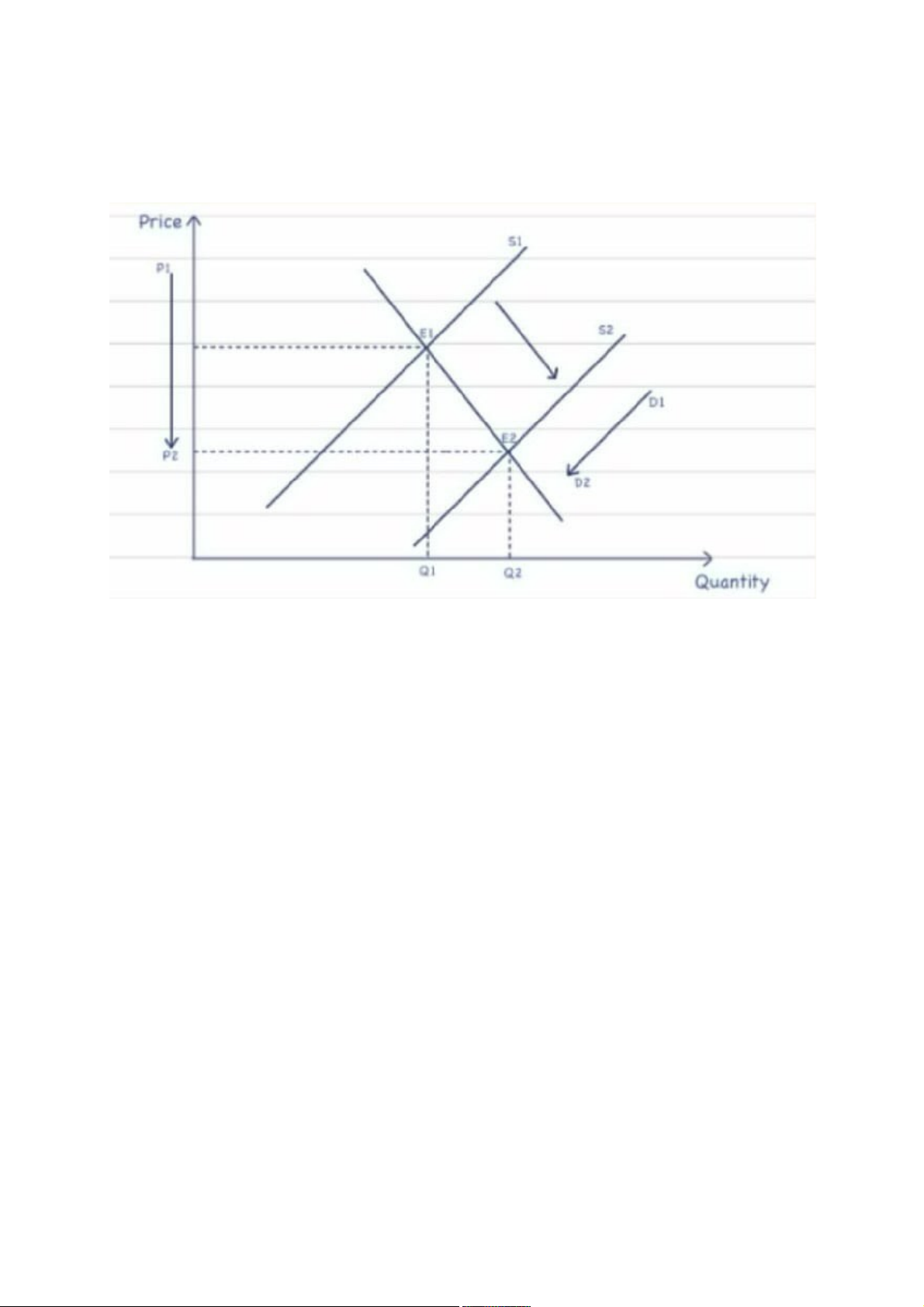 • Equilibrium Price (P): Decreases