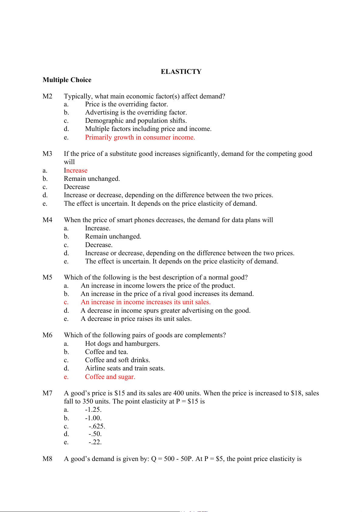 ELASTICTY Multiple Choice M2