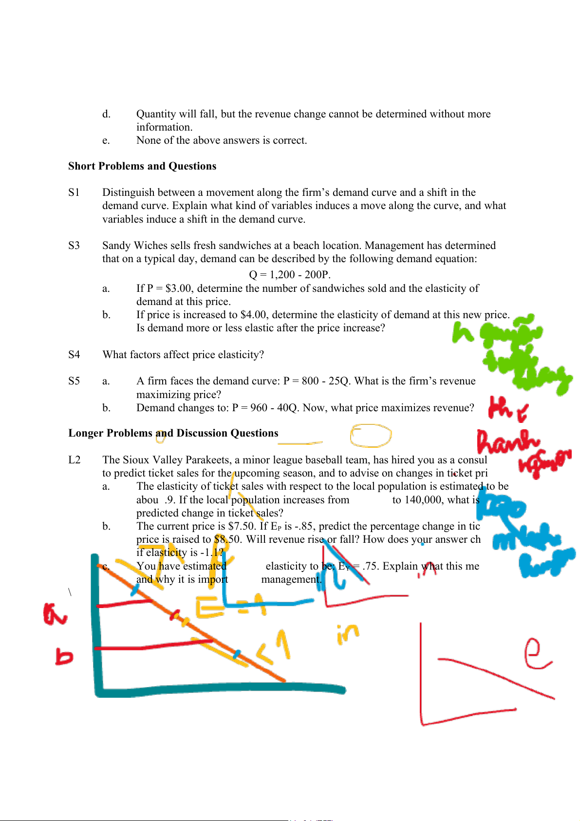 If P = $3.00, determine the number of sandwiches sold and the elasticity of demand at this price. b.