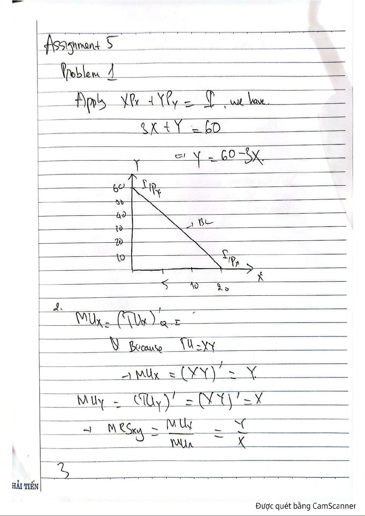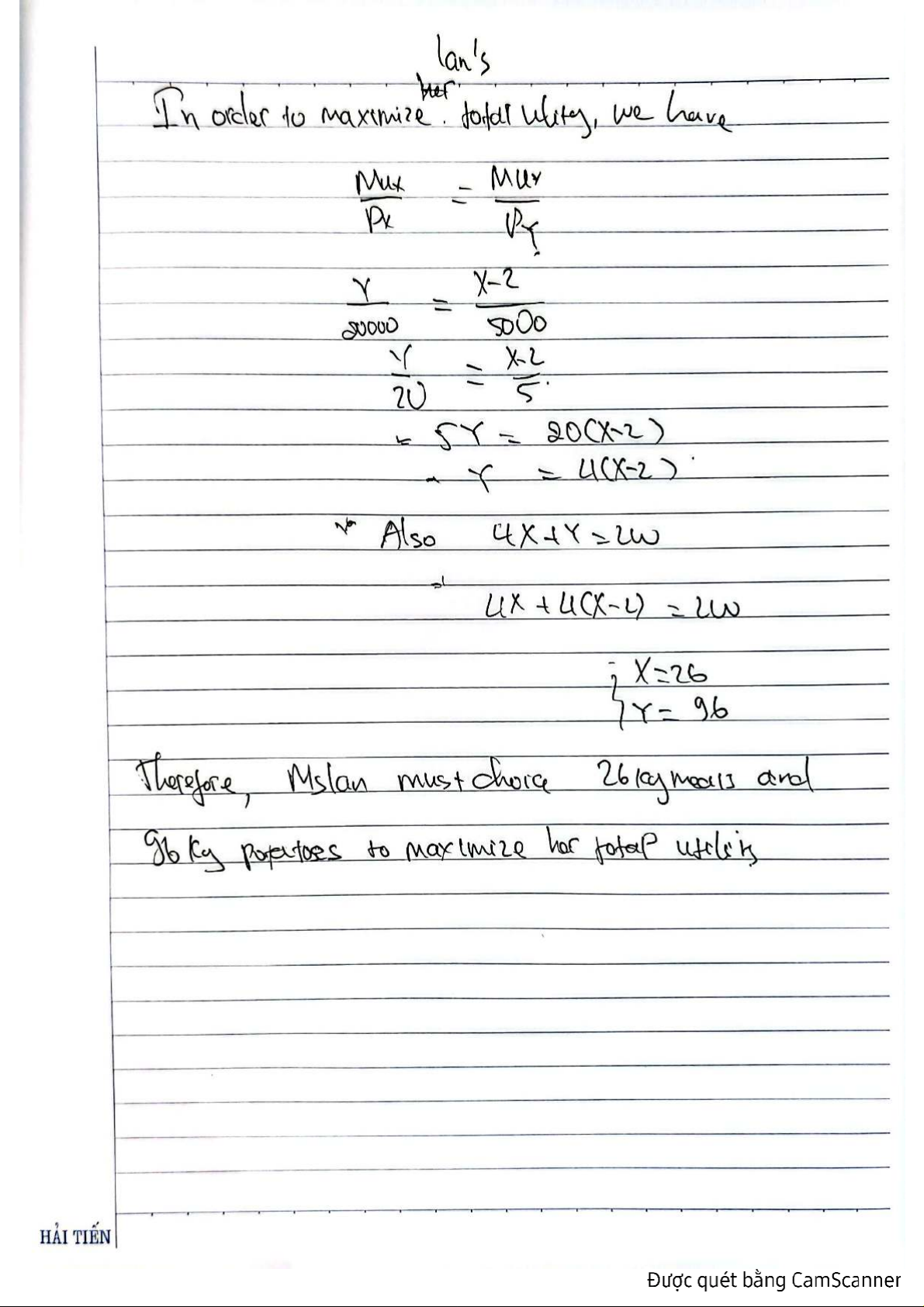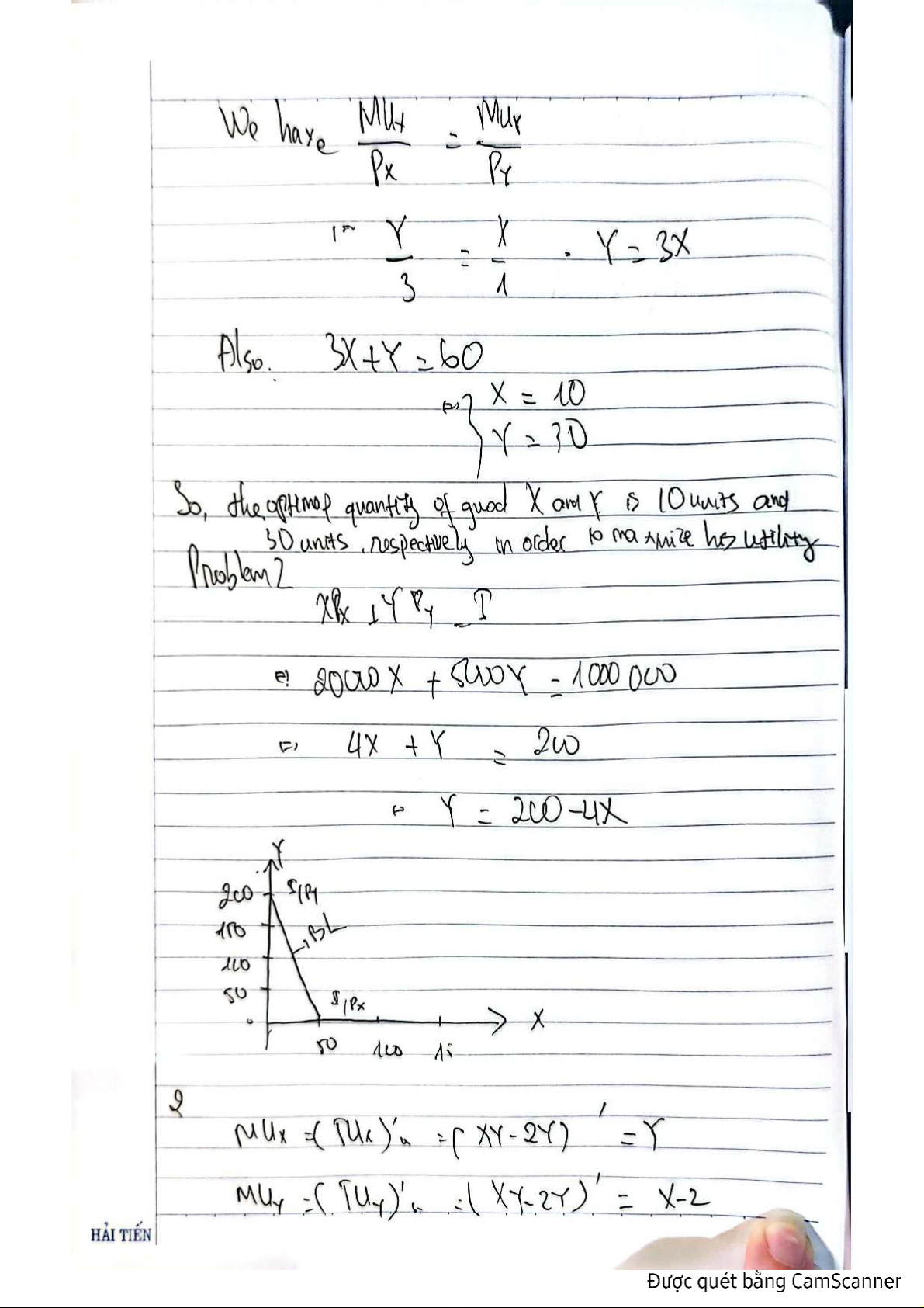 Assignment 5: Problem Solving for Utility Maximization | Microeconomics | Trường Đại học Quốc tế, Đại học Quốc gia Thành phố Hồ Chí Minh