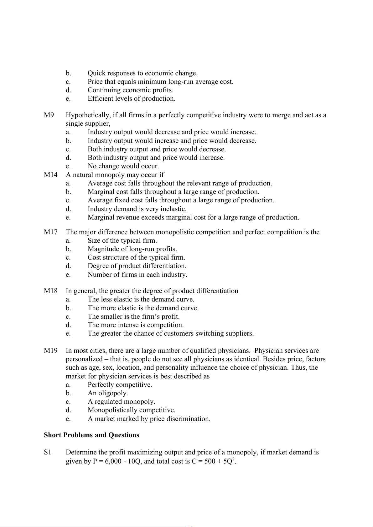 Price that equals minimum long-run average cost. d. Continuing economic profits. e.