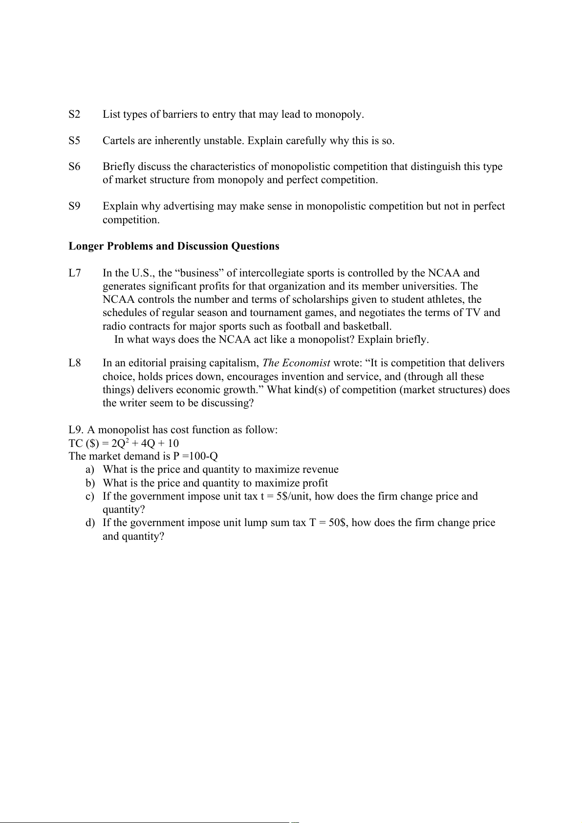 In what ways does the NCAA act like a monopolist? Explain briefly. L8