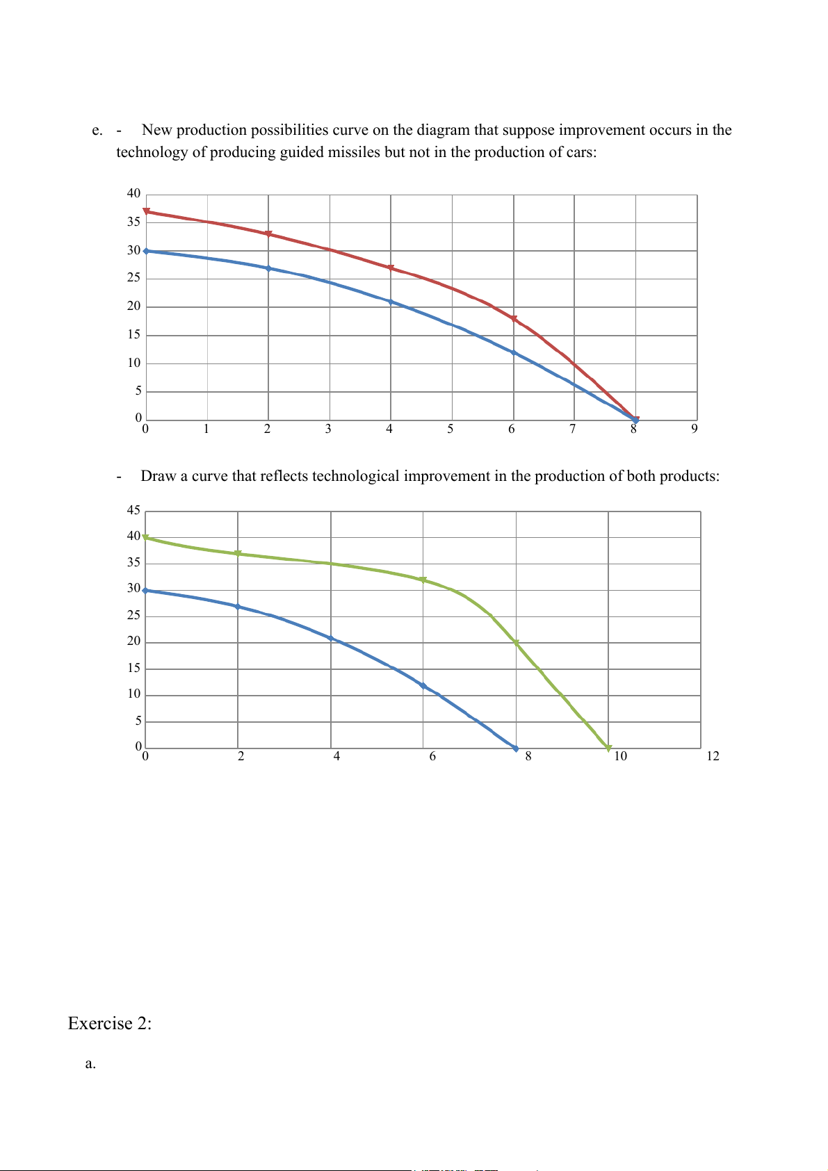 - Draw a curve that reflects technological improvement in the production of both products: 45 40 35 30 25 20 15 10 5 0 0 2 4 6 8 10 12 Exercise 2: a. 30 25 20 ) ons 15 t (t Whea 10 5 0 0 0 2 4 6 8 10 12 Cloths (1000 set)