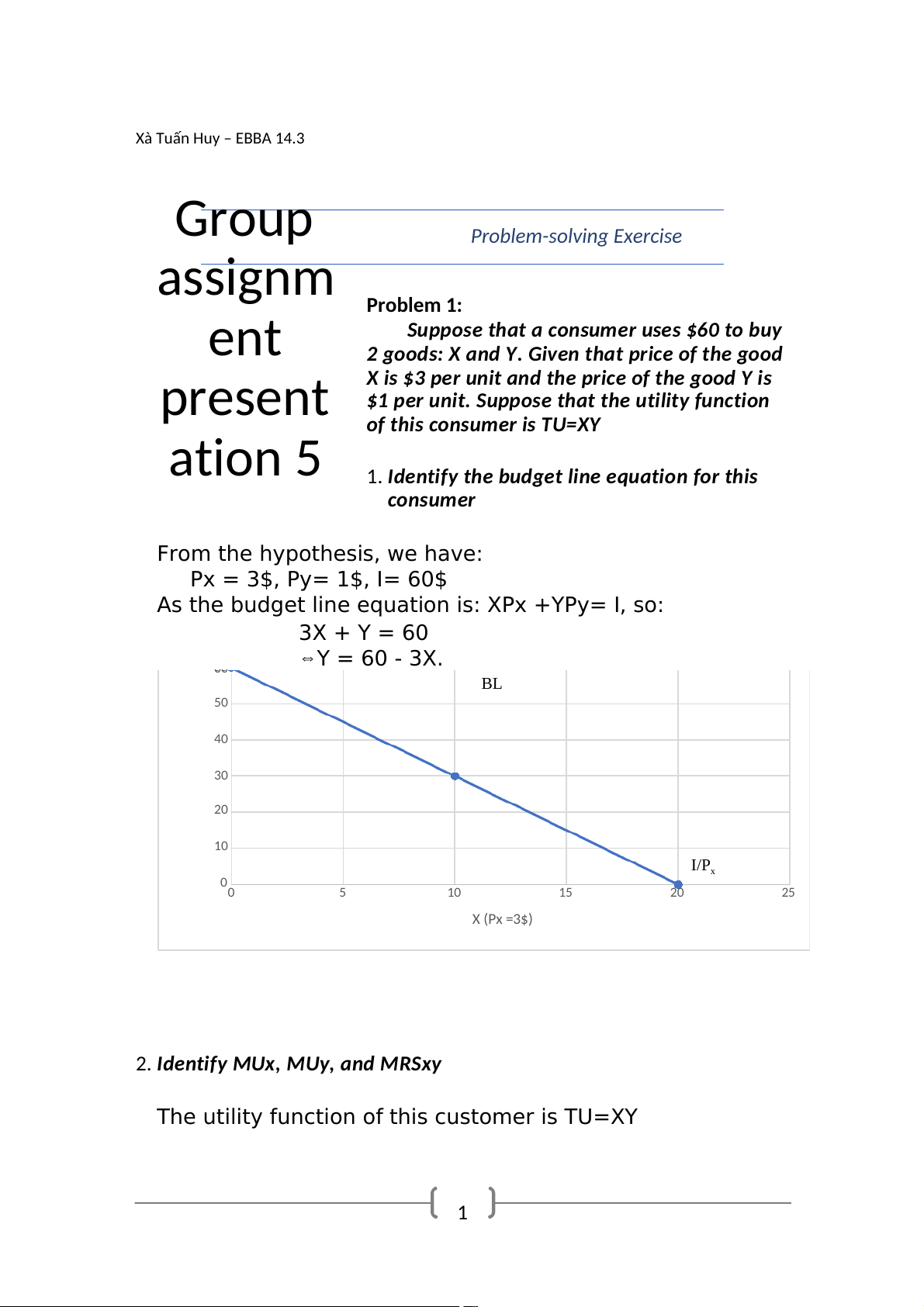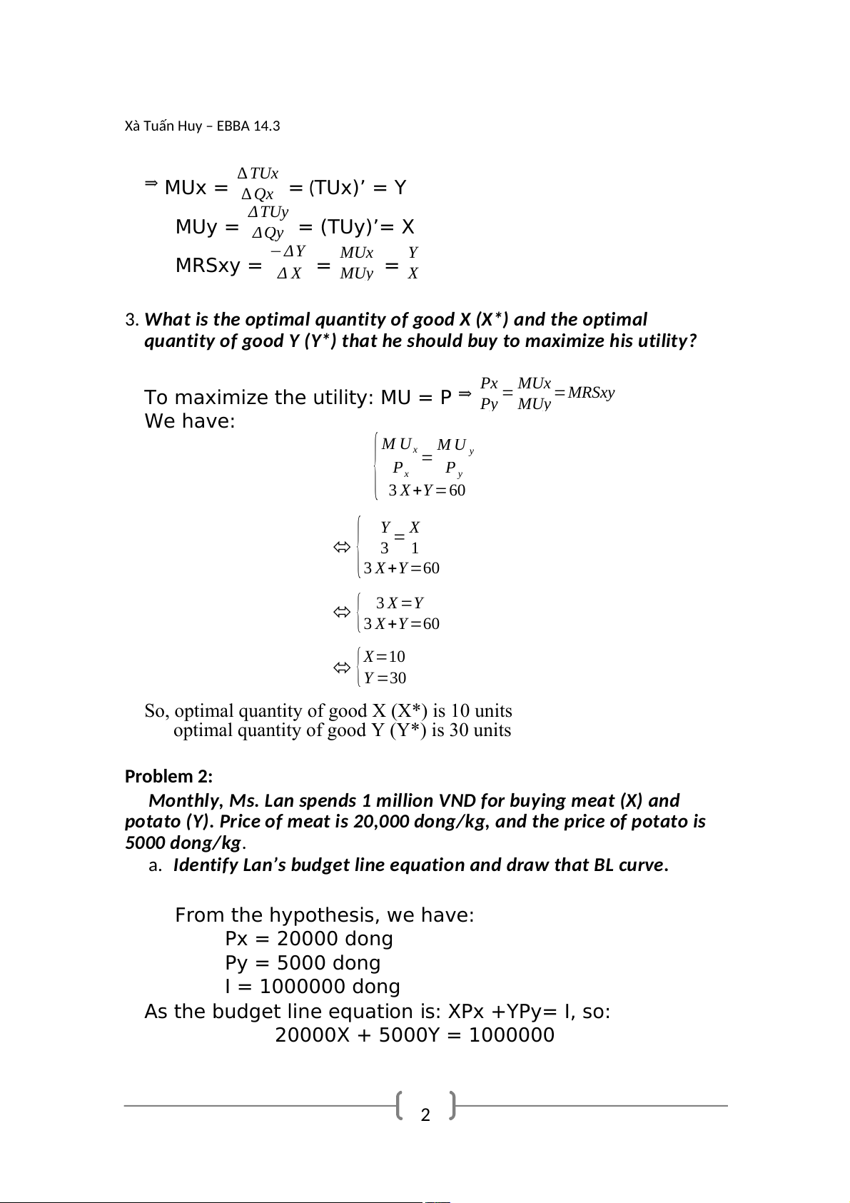 The utility function of this customer is TU=XY 1 Xà Tuấn Huy – EBBA 14.3 ∆ TUx