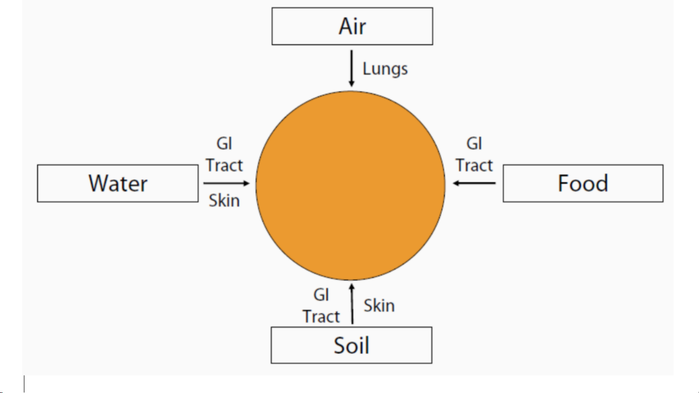 - Những yếu tố (chất gây ô nhiễm hay chất độc) trong không khí, đất, nước hay thực phẩm