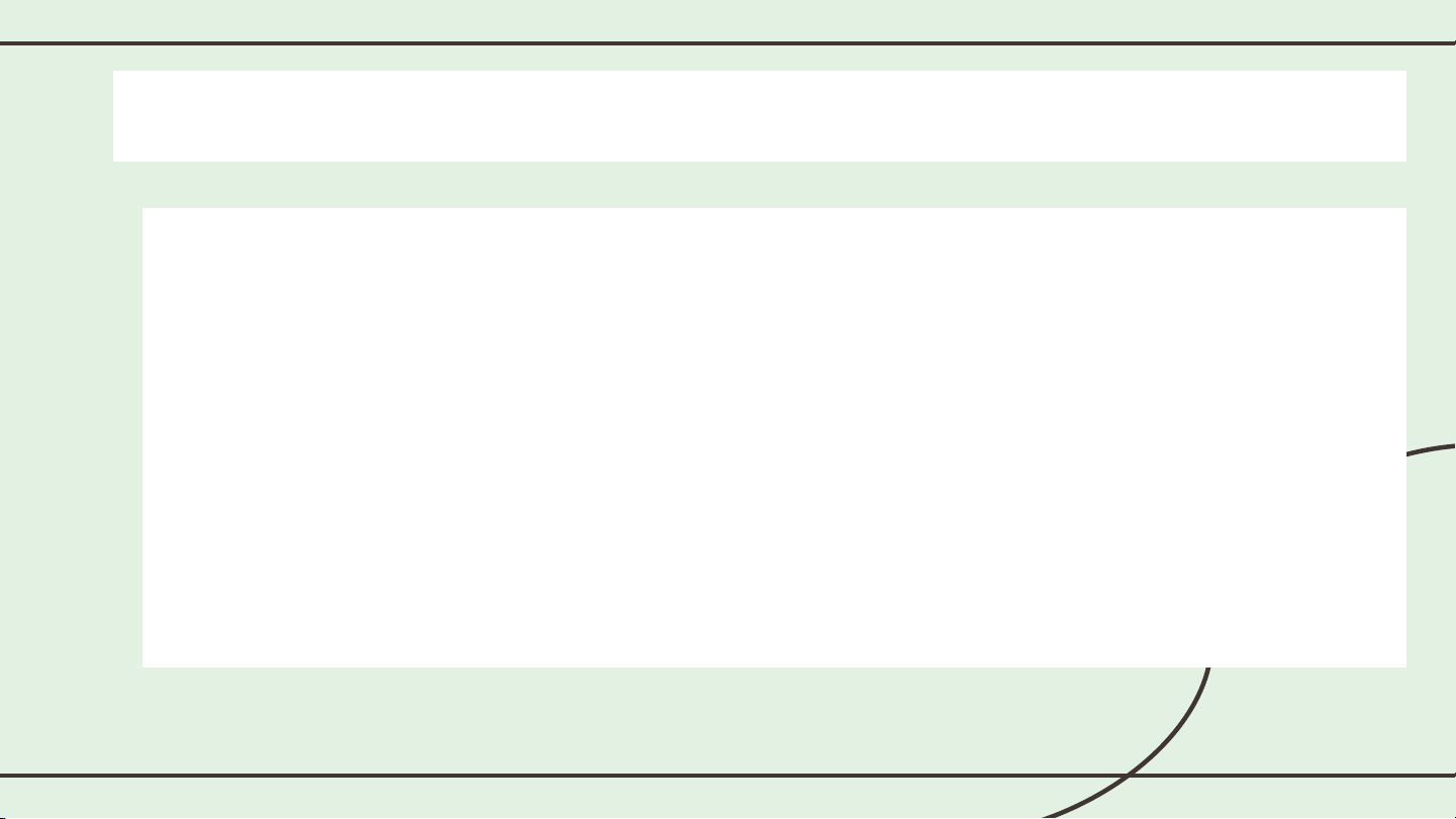 GV VÕ THỊ NGỌC HẠNH T10. 2025 MỤC TIÊU Nêu được định nghĩa Trình bày được phân 01 02 về môi trường và sức loại môi trường. khỏe Trình bày được tác Trình bày được động của ô nhiễm tác động của ô môi trường không 03 04 nhiễm môi trường khí đến sức khỏe nước đến sức khỏe con người và biện con người và biện pháp đề phòng. pháp đề phòng. ĐỊNH NGHĨA 1.Môi trường là gì? 2. Sức khỏe 3. Bệnh 4. Sức khỏe môi trường ĐỊNH NGHĨA