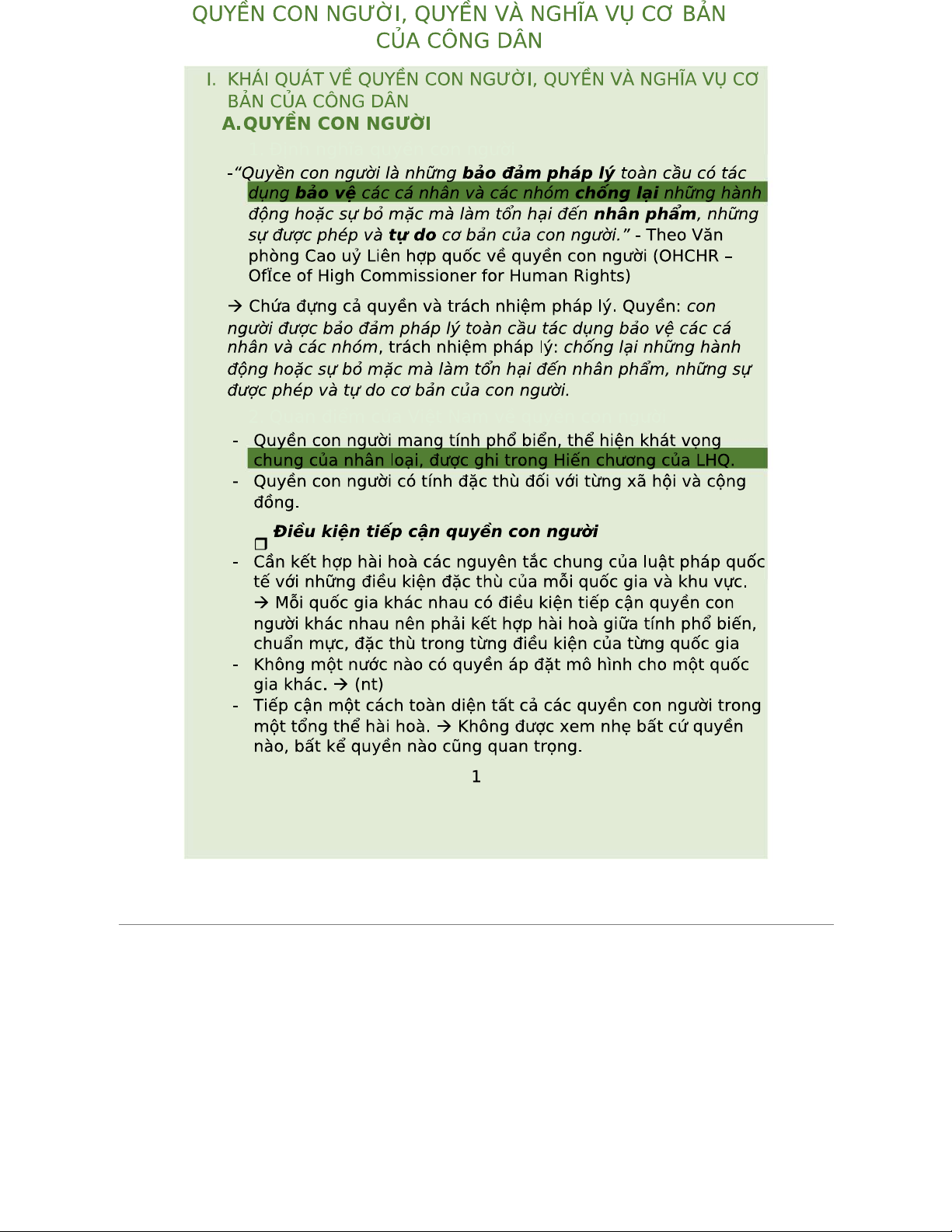 B3 Quyền Con Người và Nghĩa Vụ Cơ Bản của Công Dân - Tóm Tắt