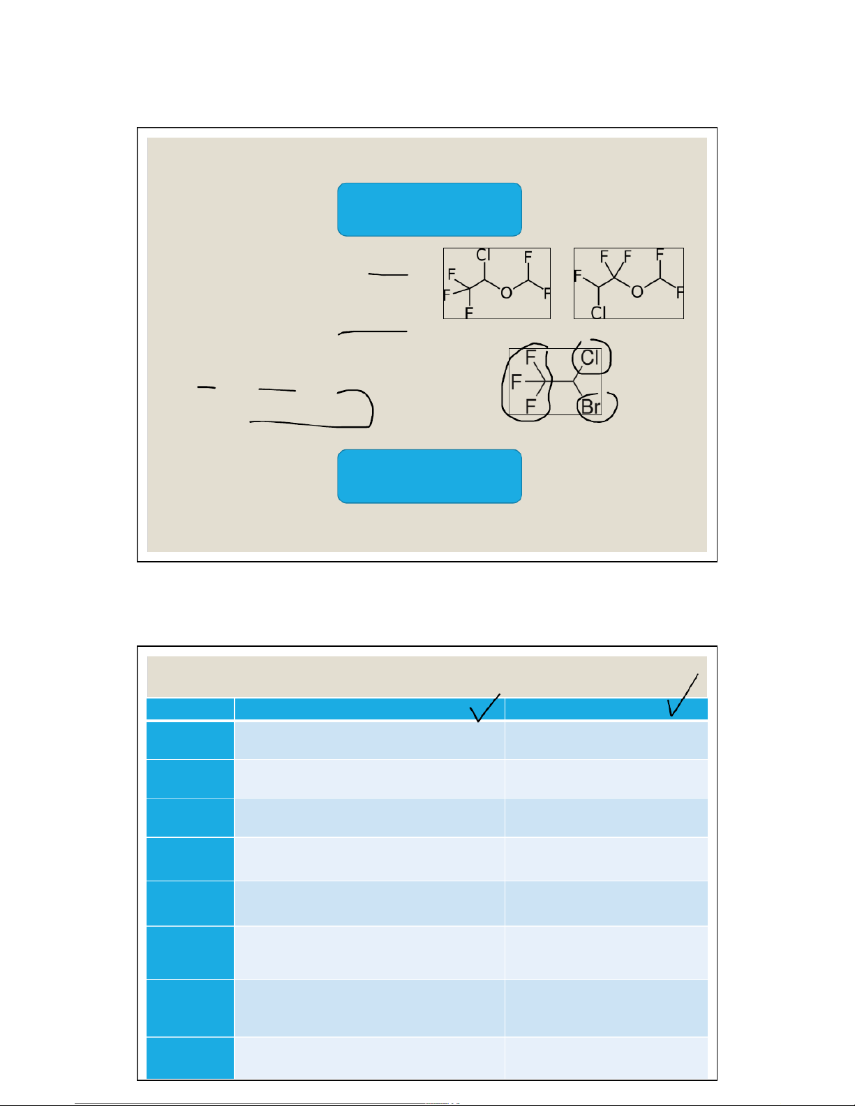 Halothan CHBrCl-CF3 (2-B trif rom luoro 2-c -et lor ha o 1 n) ,1 C ,1 hấ - t lỏng bay hơi, không cháy Enfluran CHF2-O trif -C luo F2 ro -CH eth FC yl l (2 dif -C luo loro 1 rom ,1 eth ,2 yl - ether)