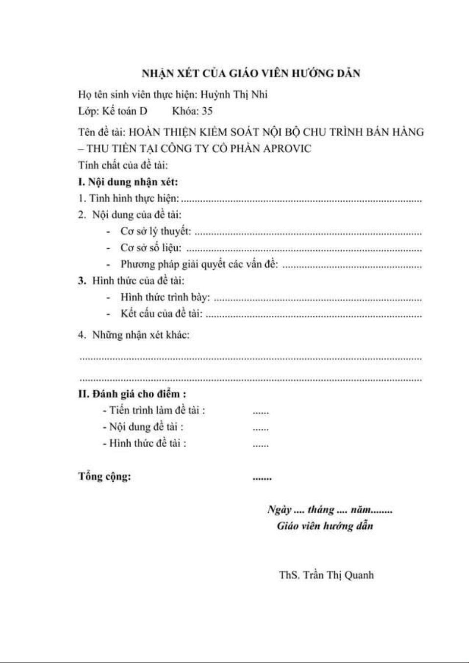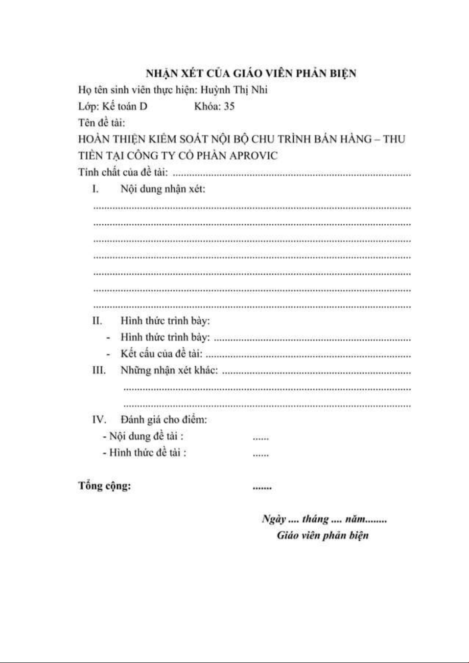 kiểm soát nội bộ chu trình bán hàng - thu tiền