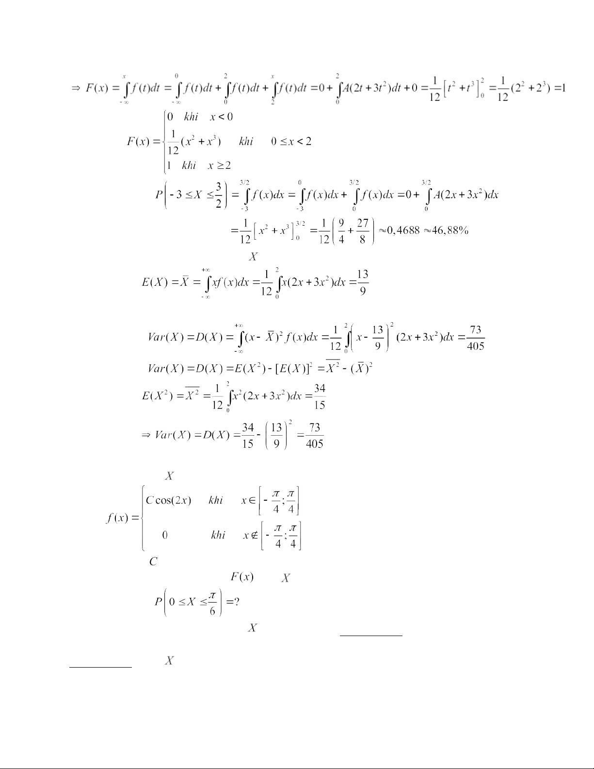 là hàm phân phối xác suất cần tìm. 0 2 TH1: 0 2 Ta có TH2: Ta có 0 2 TH3: 0 2 lOMoAR cPSD| 59285474 Vâ y ta có: c/ Tính xác suất