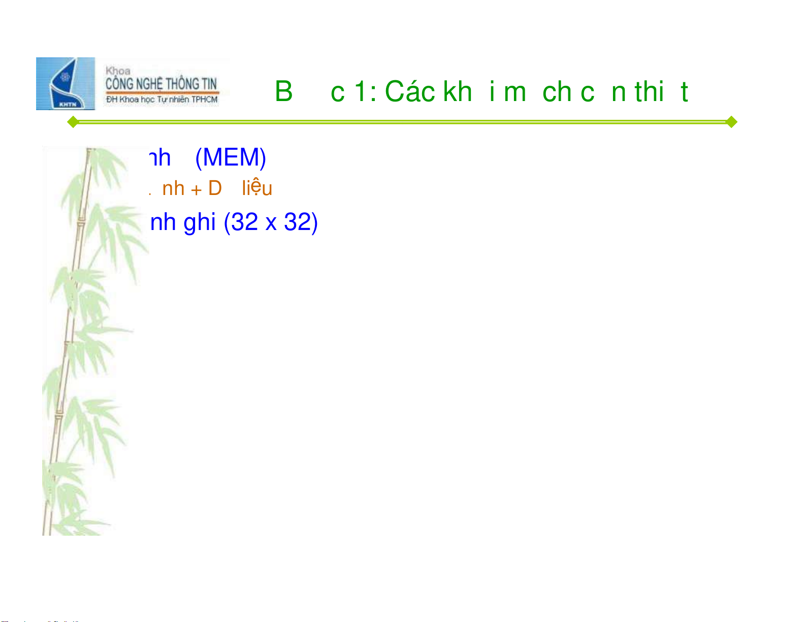 Write Enable Address B nh – ộ đườ ữ ệ M t ng d li u vào Data In DataOut • Data In 32 32 – ộ đườ ữ ệ M t ng d li u ra • Data Out – Đườ đị ỉ để đị ừ ớ ng a ch (address) xác nh t nh nào đượ ấ c truy xu t – ệ đị ữ ệ đượ