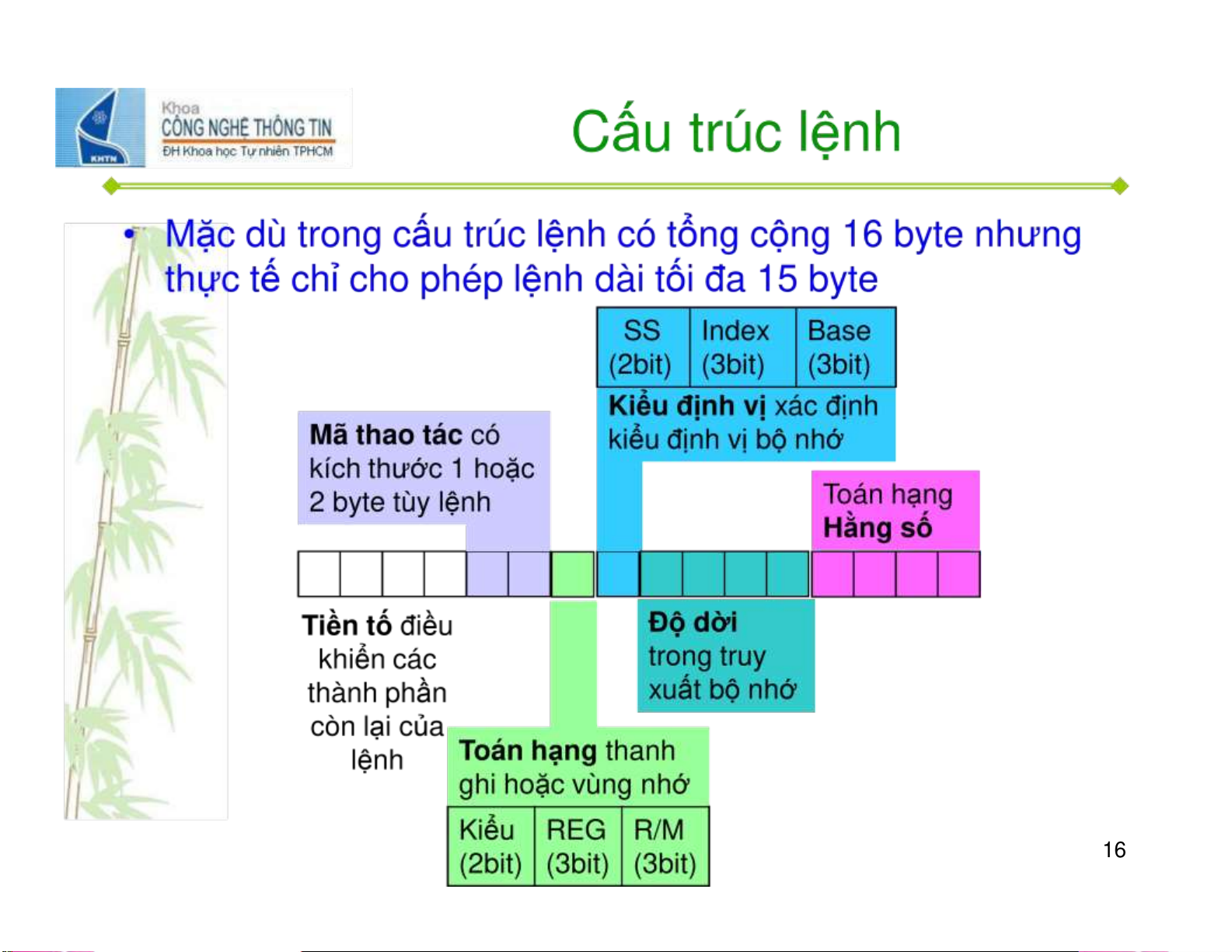 trường R/M hạng đích là REG vào trường R/M là thanh ghi thanh ghi CL d Kiểu R/M … … 0 0 0 0 0 0 0 0 1 1 0 0 0 0 0 1 … … … Mã thao tác của REG lệnh ADD là s Giá trị 000 (kết 000000 hợp với trường d=0) cho biết Giá trị 0 cho biết toán hạng lệnh