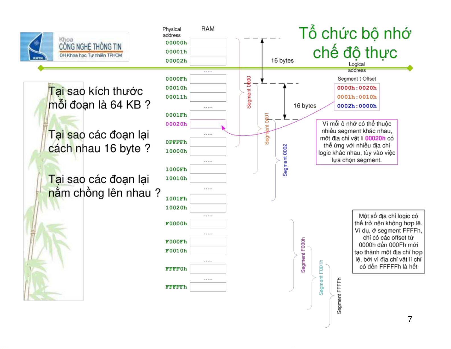 – Vd: địa chỉ logic 1234h:0005h sẽ ứng với địa chỉ vật lí