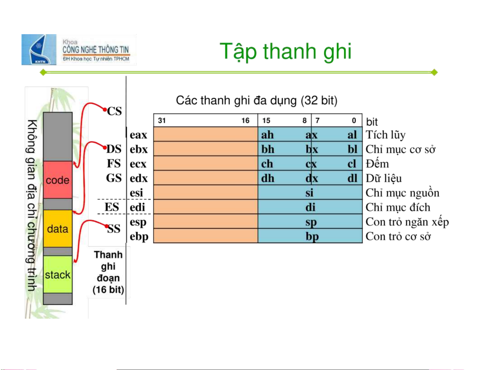 • Thanh ghi chứa địa chỉ lệnh (EIP – 32 bit), kết hợp thanh