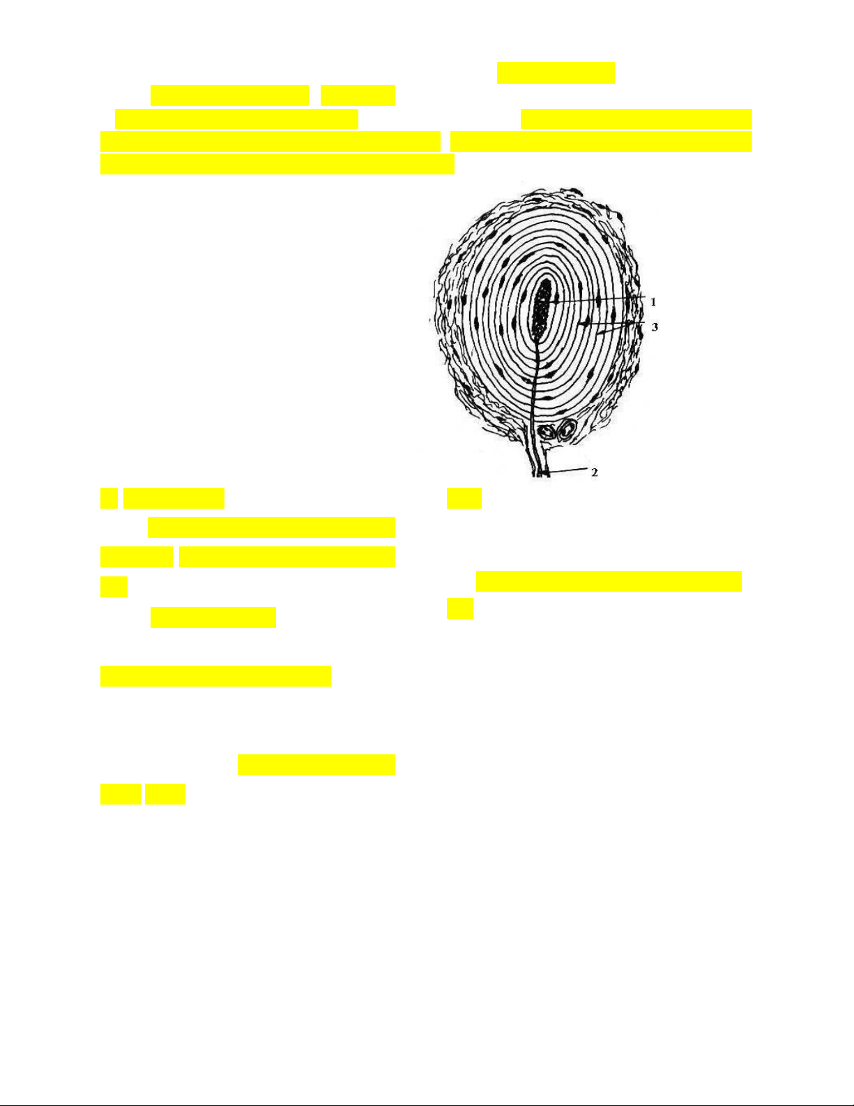 Malpighi); 5. Cầu nối; 6. Lớp hạt; 7.