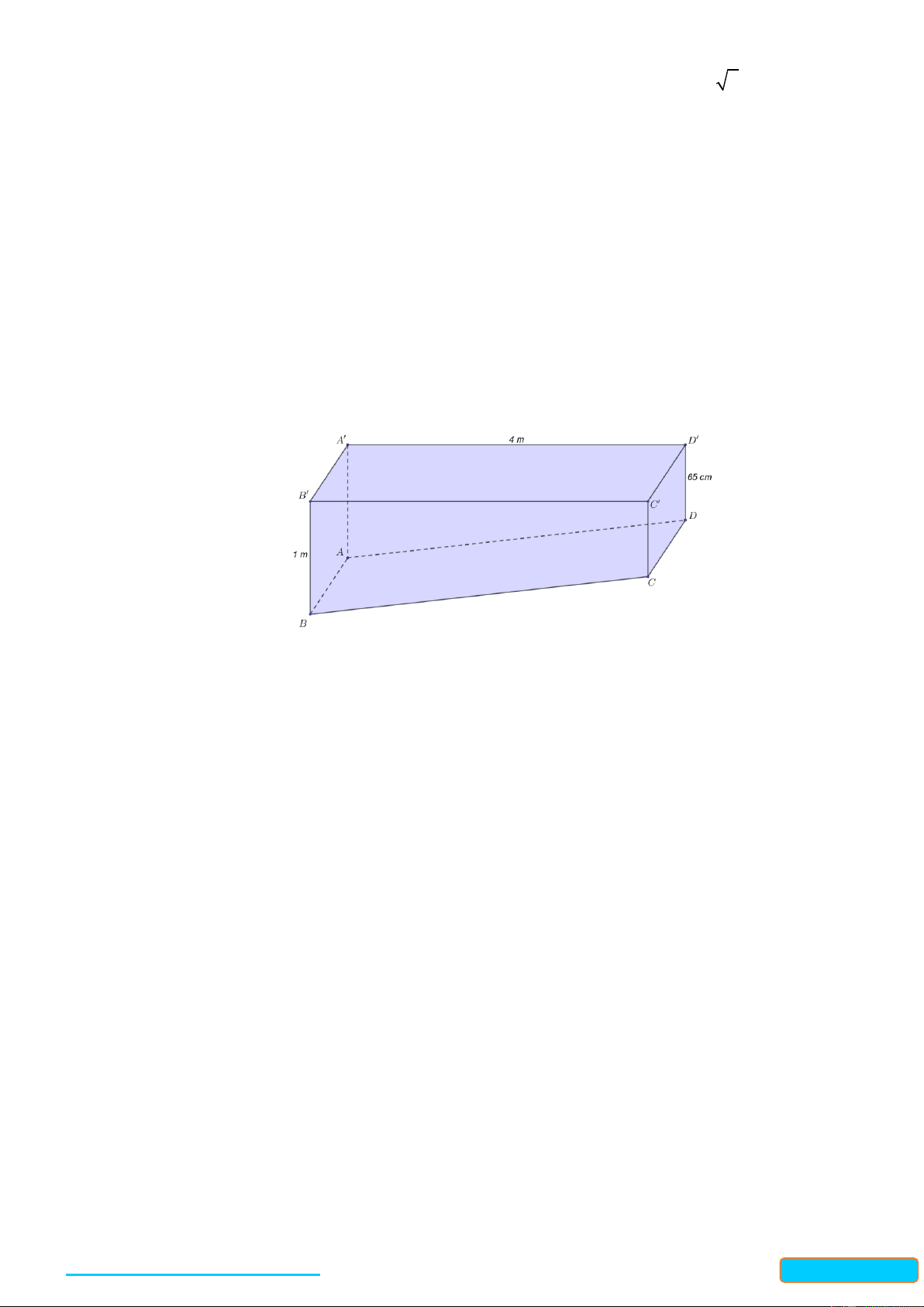 CC . Tính côsin của góc giữa hai đường thẳng BC và A B . 1 Câu 4: