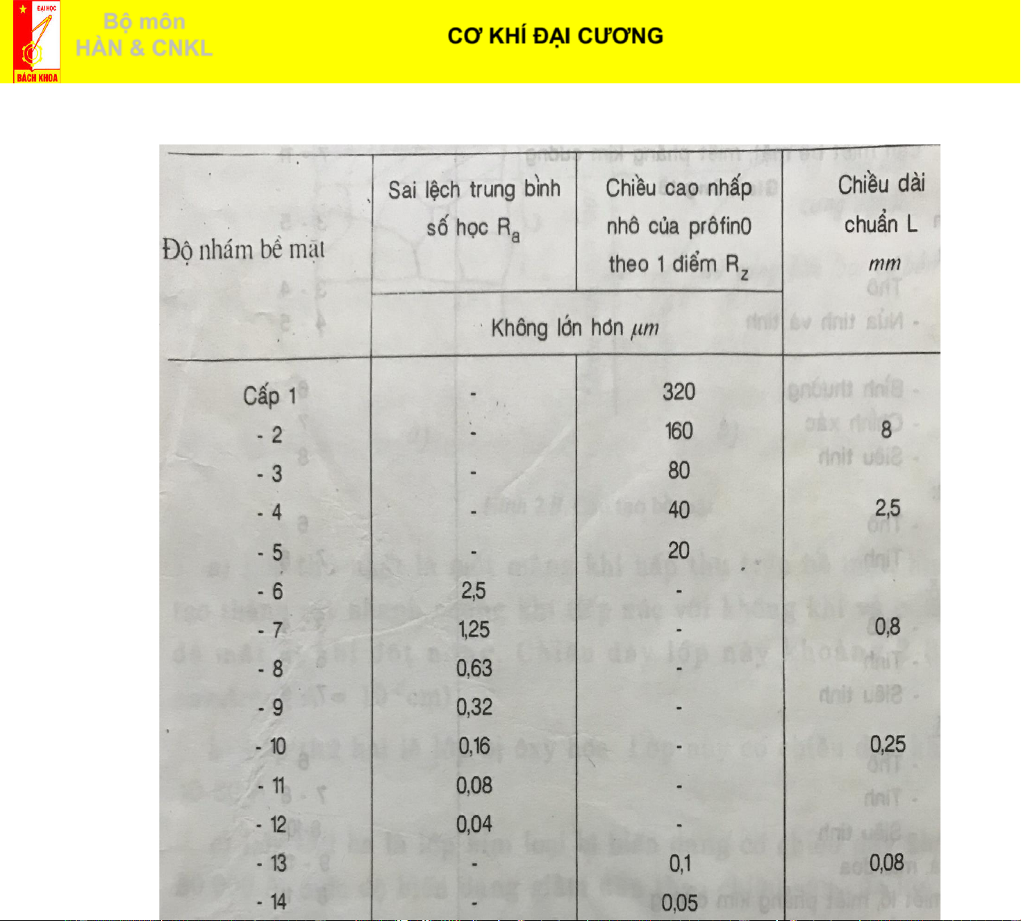 §èi víi cÊp 13,14 vµ 1 5 chñ yÕu dïng th«ng sè Rz. Ký R 20 2,5 hiÖu: z Bộ môn CƠ KHÍ ĐẠI CƯƠNG Biên soạn: HÀN & CNKL ThS. Vũ Đình Toại