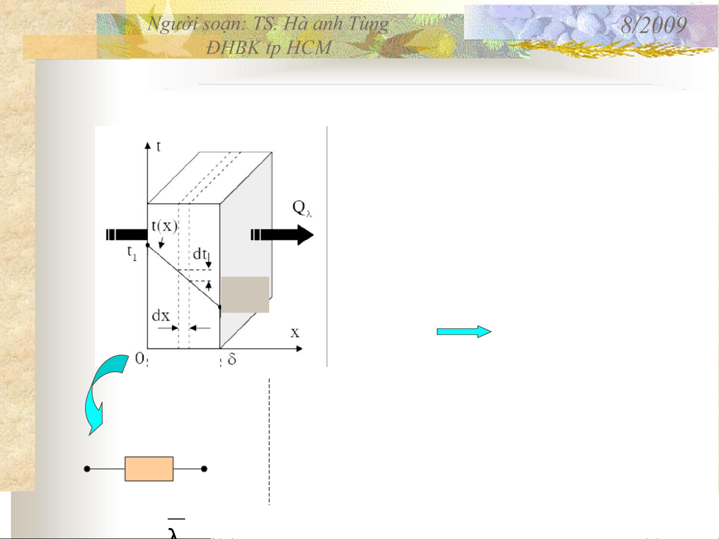 + Nhiệt ộ 2 bề mặt vÆch T1 v T2 Δ Q F=λ T δ Δ q = T δ/λ - VÆch phẳng c : Q T 1 T 2 T 1 T 2 δ λ ĐL Fourier(W) hay(W/m2) U ĐL Ohm R I = Rλ=
