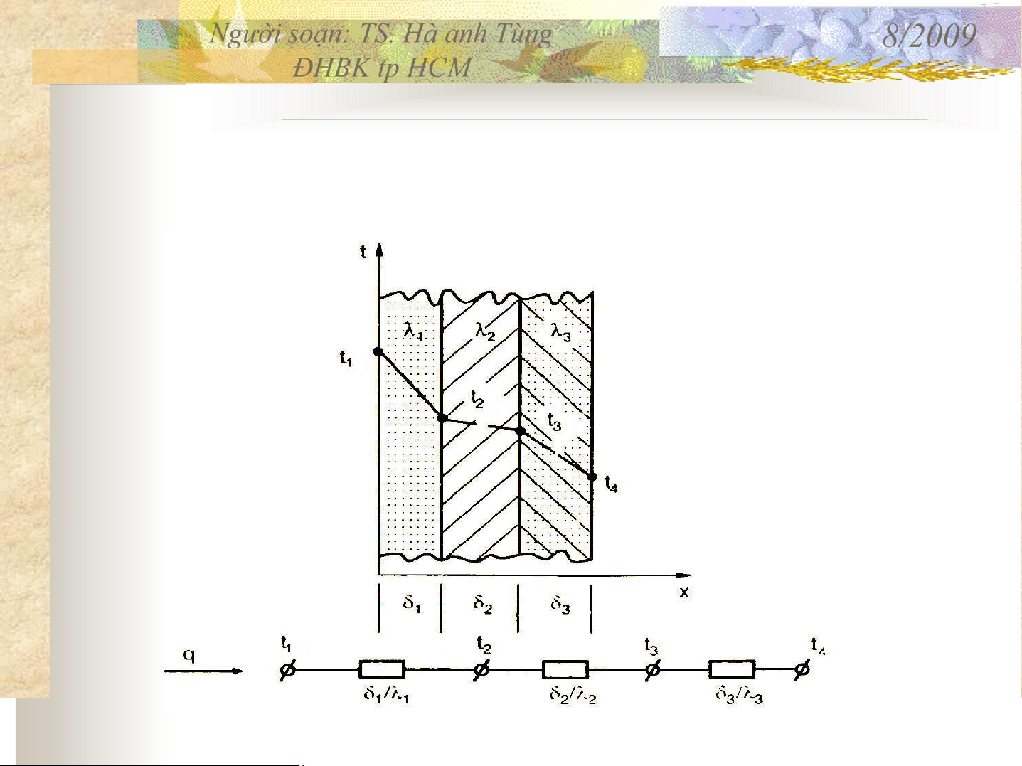 (Rλ ược gọi l nhiệt trở dẫn nhiệt của vÆch phẳng) q = t1 −t4 R 1 + +R2 R3