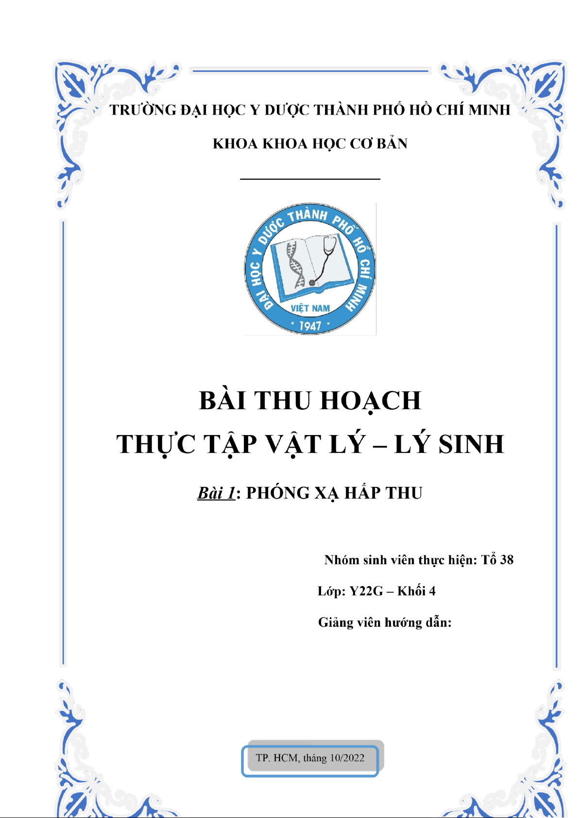 BÀI THU HOẠCH THỰC TẬP VẬT LÝ – LÝ SINH