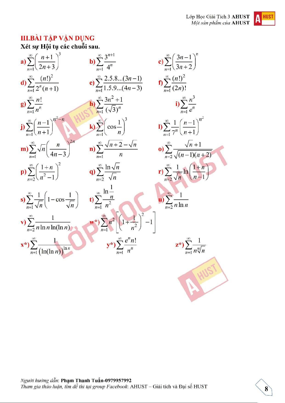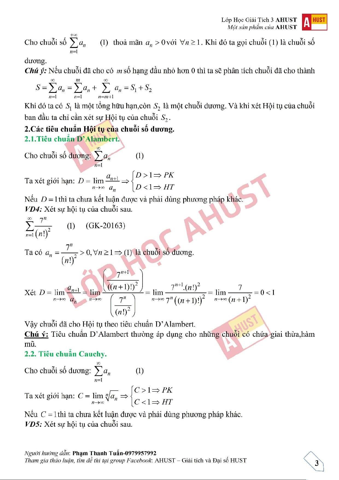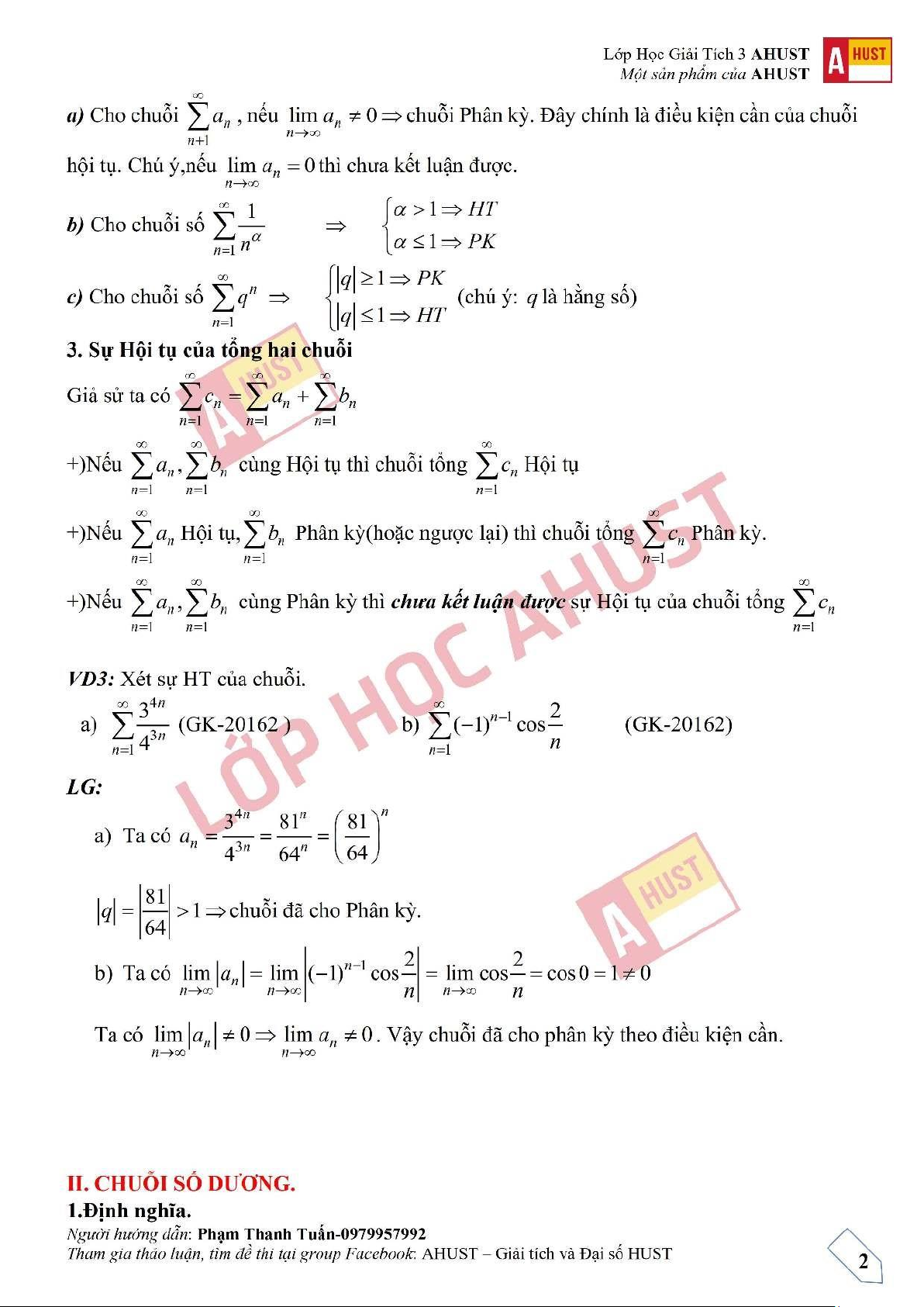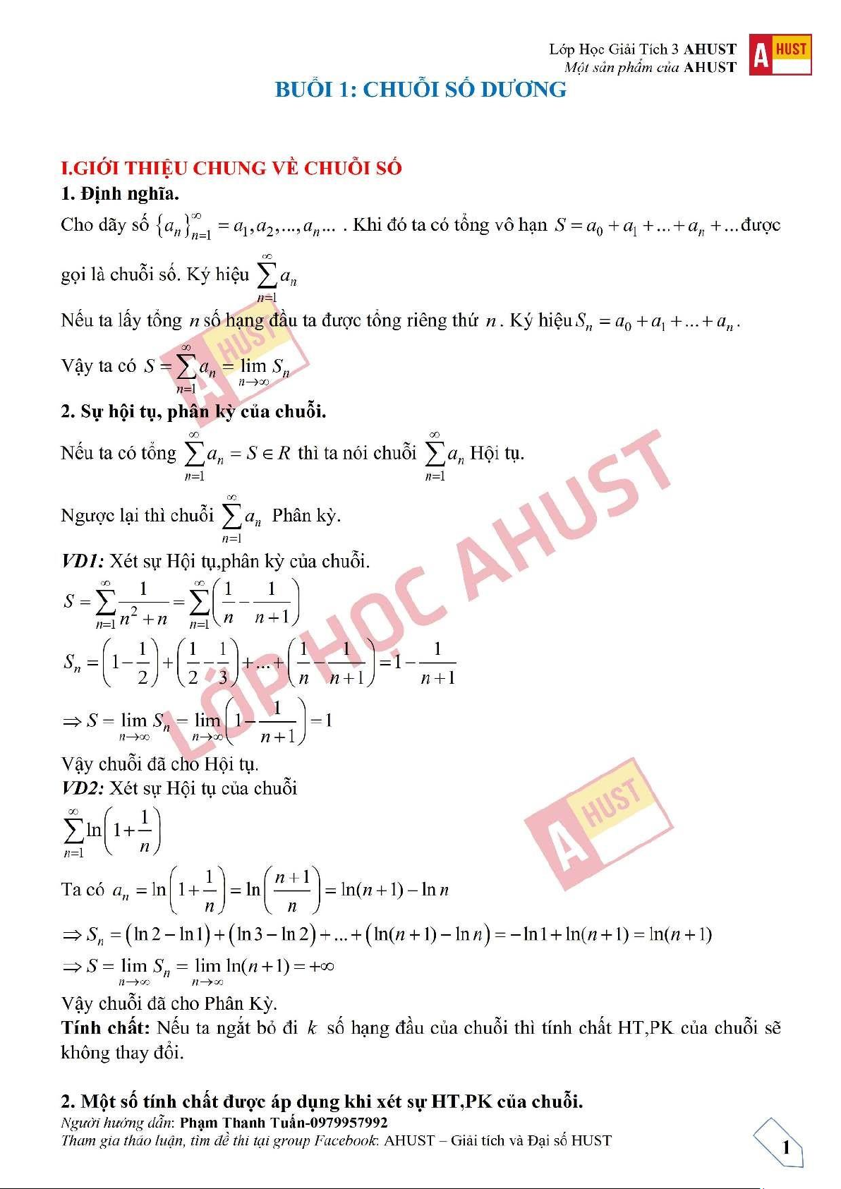 Bài 1: Tính chất và định nghĩa của chuỗi số dương môn Giải tích 3 | Trường Đại học Bách Khoa Hà Nội