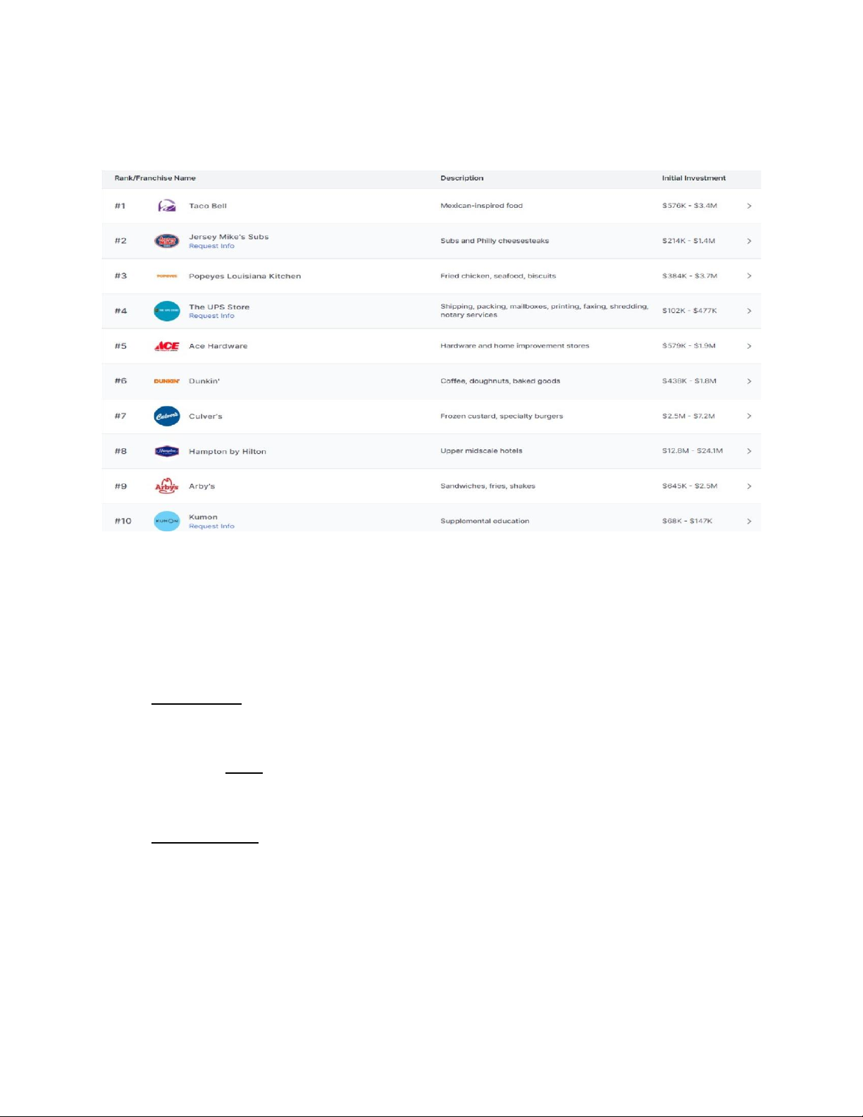 11. “Top Ten” Franchises in the US. (source: www.Entreprenuer.com) (10 thương