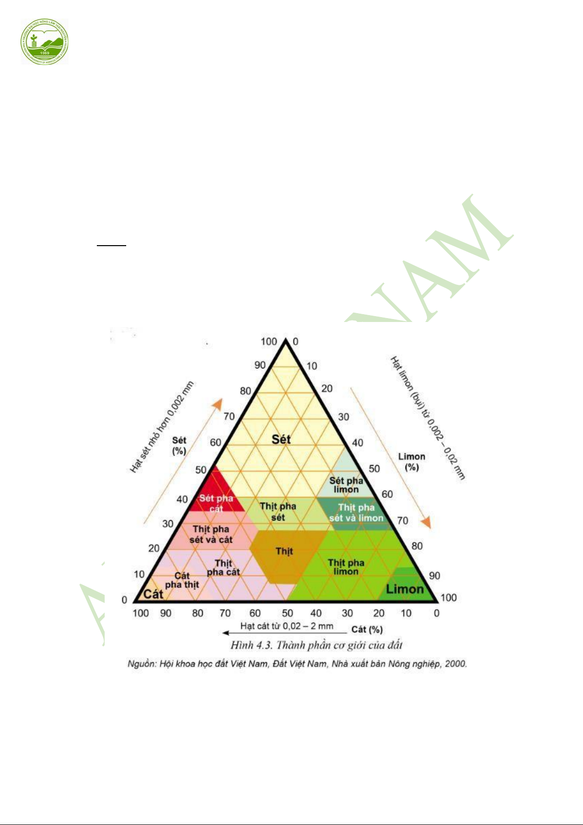 (từ 0,002 đến 0,05mm) và sét (nhỏ hơn 0,002mm). Tỉ lệ (%) của các hạt cát, limon và sét