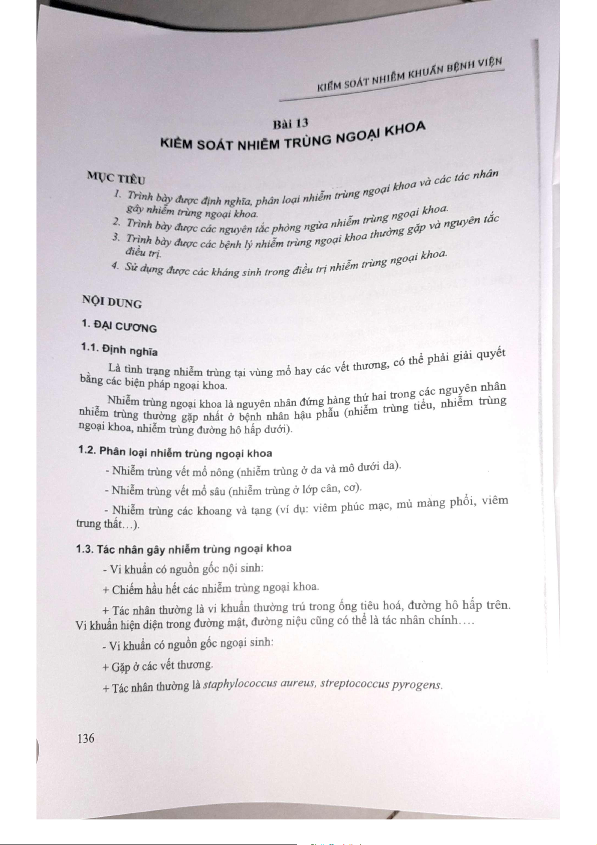 Bài 13 Kiểm soát nhiễm trùng ngoại khoa | Tài liệu Kiểm soát nhiễm khuẩn