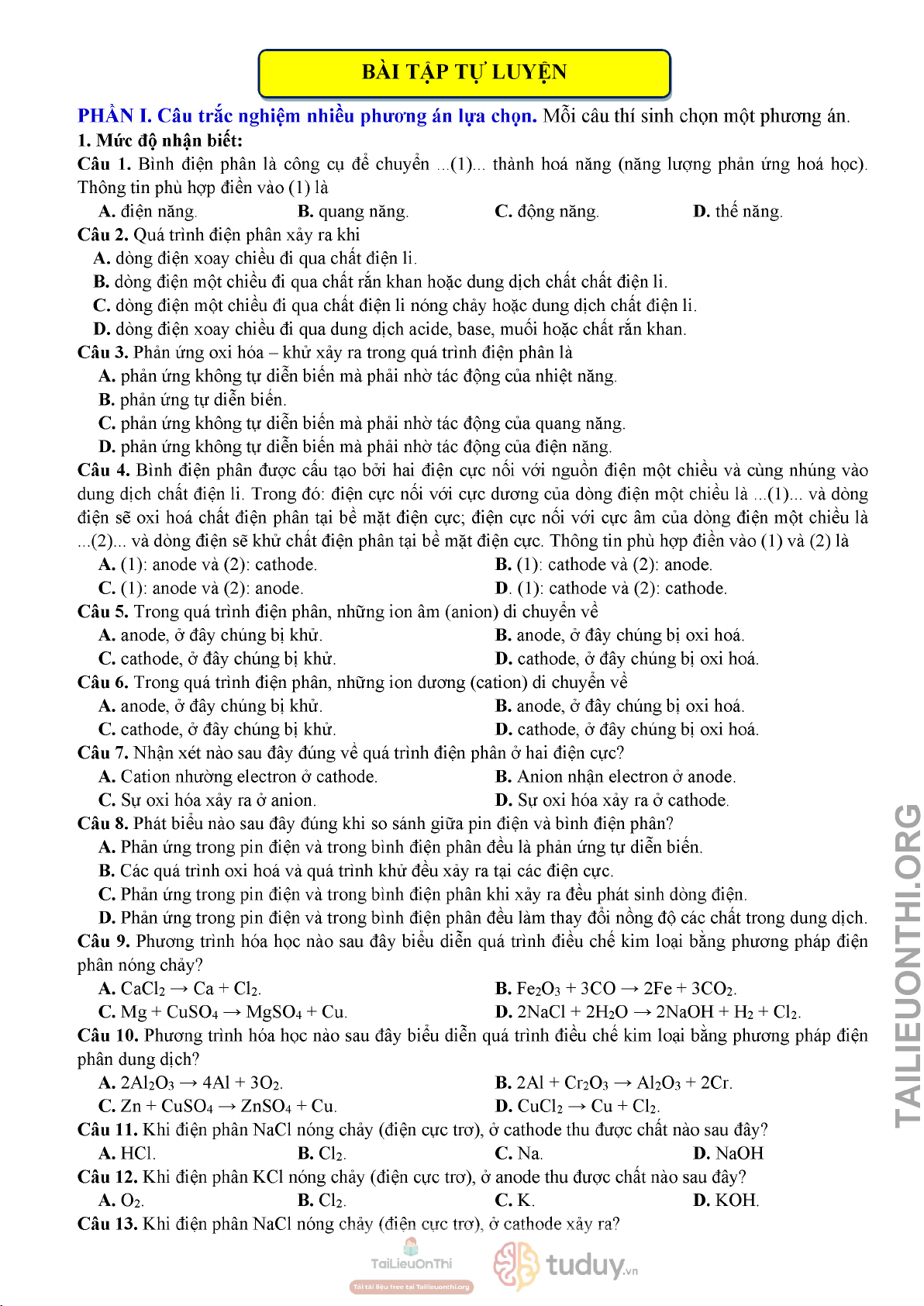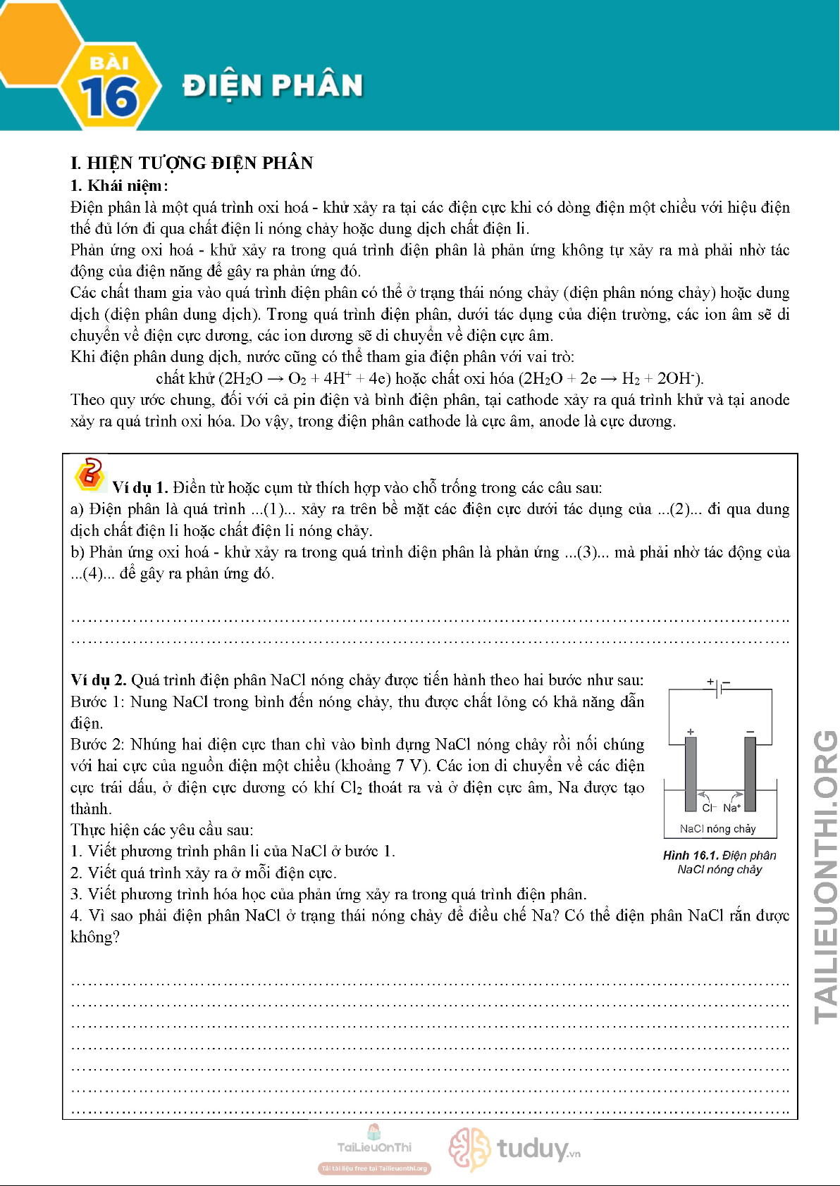 Bài 16 Điện phân môn môn Vật lý đại cương | Học viện Báo chí và Tuyên truyền