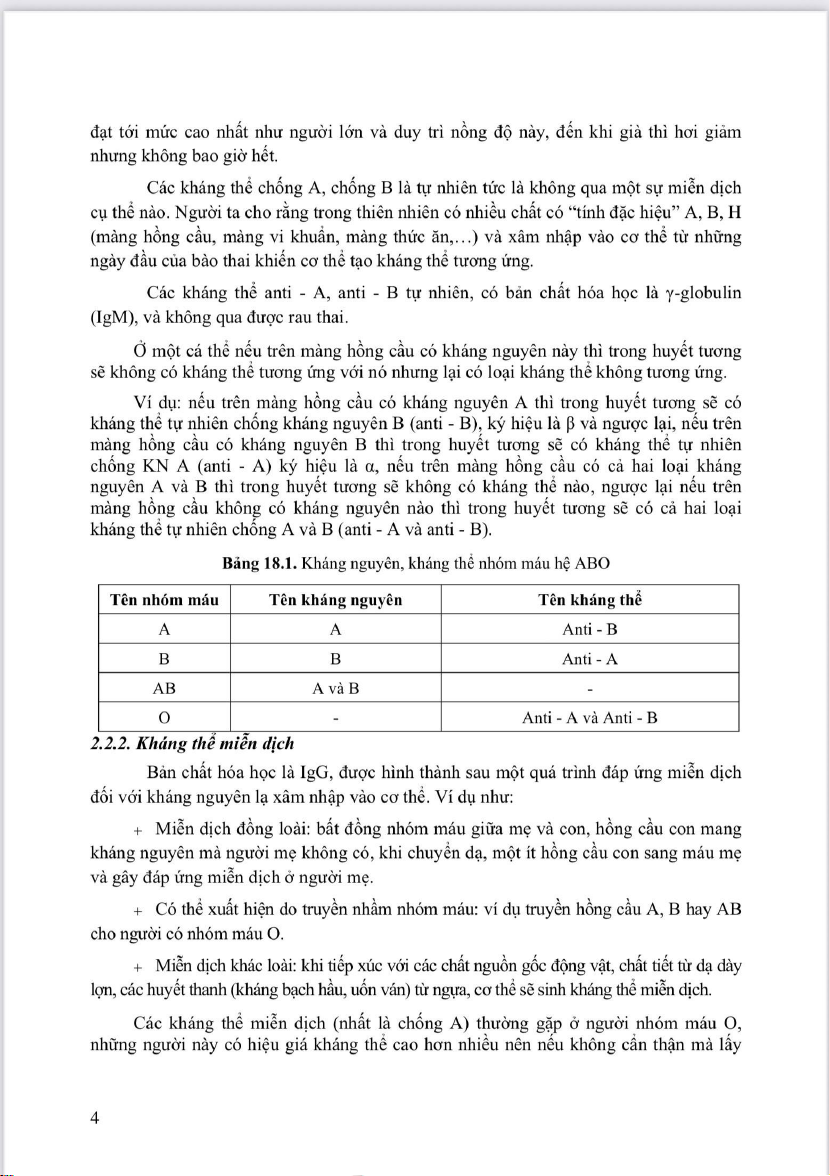 Các kháng thể miễn dịch (nhất là chống A) thường gặp ở người nhóm máu O,