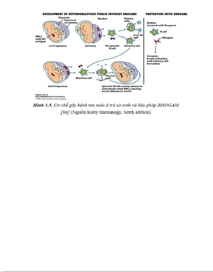 được hàng rào rau thai và tấn công các tế bào hồng cầu của thai gây ra bệnh tán huyết (hình 19.5).