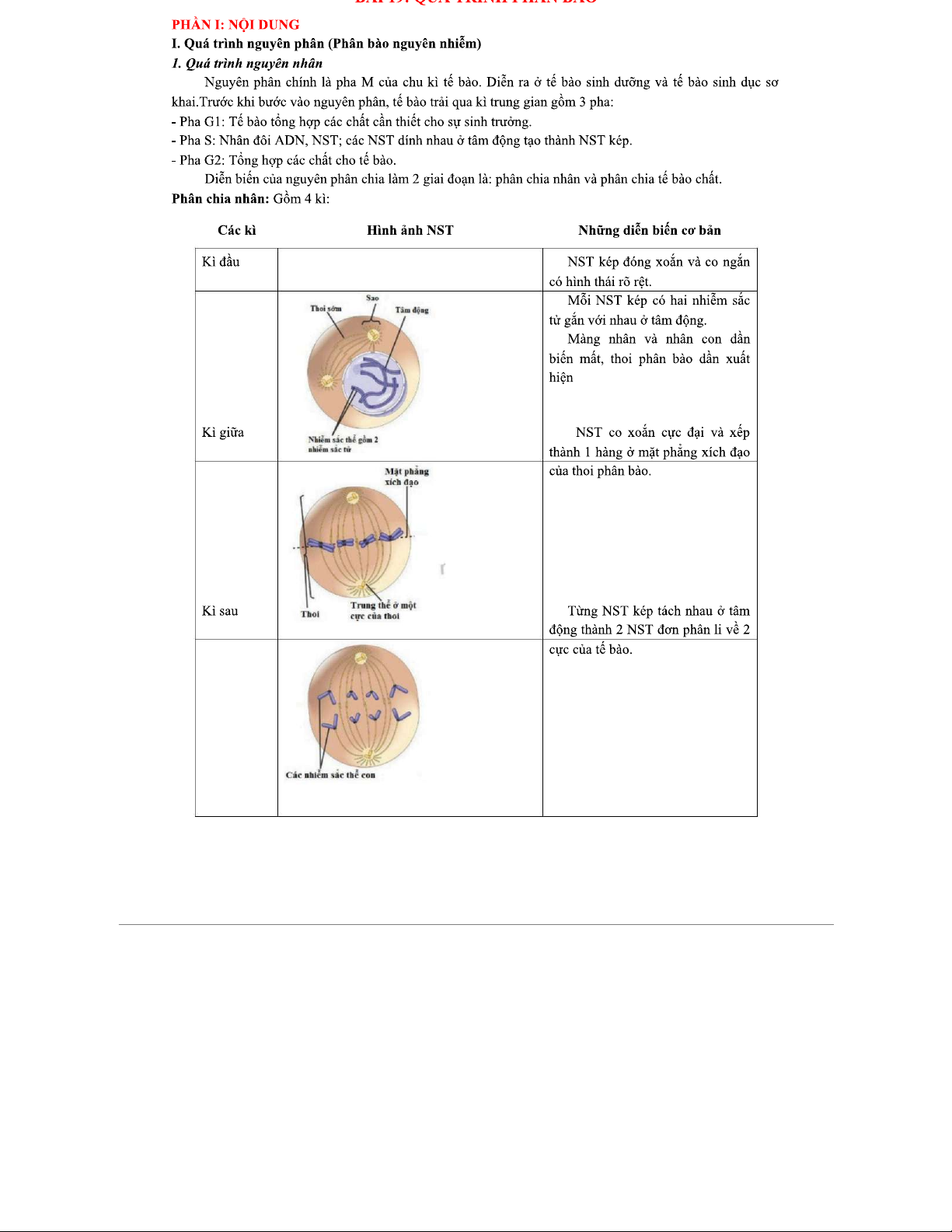 BÀI 19: QUÁ TRÌNH PHÂN BÀO VÀ BÀI TẬP LIÊN QUAN