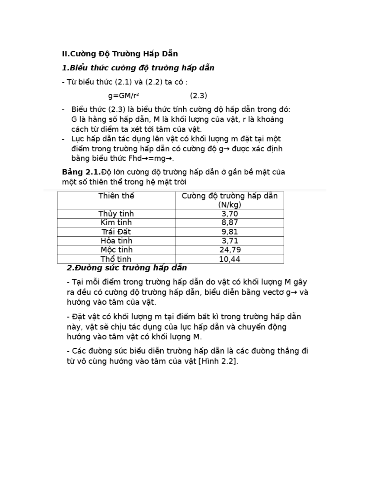Bài 2: Cường Độ Trường Hấp Dẫn và Đường Sức Trường Hấp Dẫn. Tài liệu được sưu tầm. Mời các bạn tham khảo