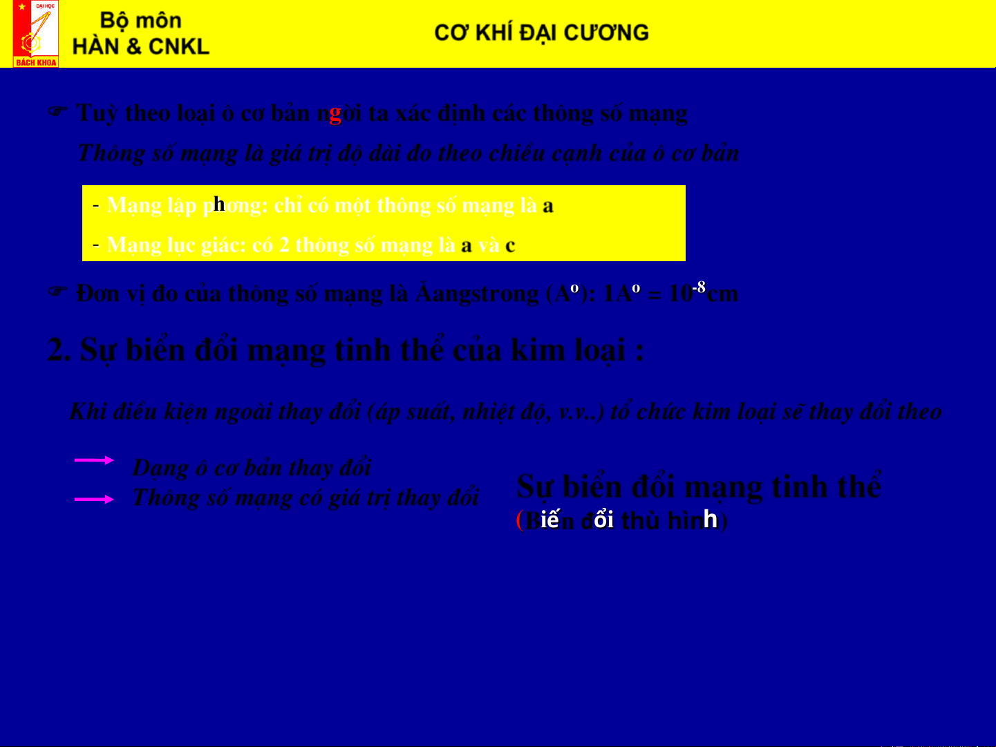 Sù biÓn ®æi m¹ng tinh thÓ (Biến đổi thù hình) Bộ môn CƠ KHÍ ĐẠI CƯƠNG Biên soạn: HÀN & CNKL ThS. Vũ Đình Toại §êng nguéi: Tèc ®é nguéi toC T1 C = tg R T2 (s) 0 tn §êng nguéi