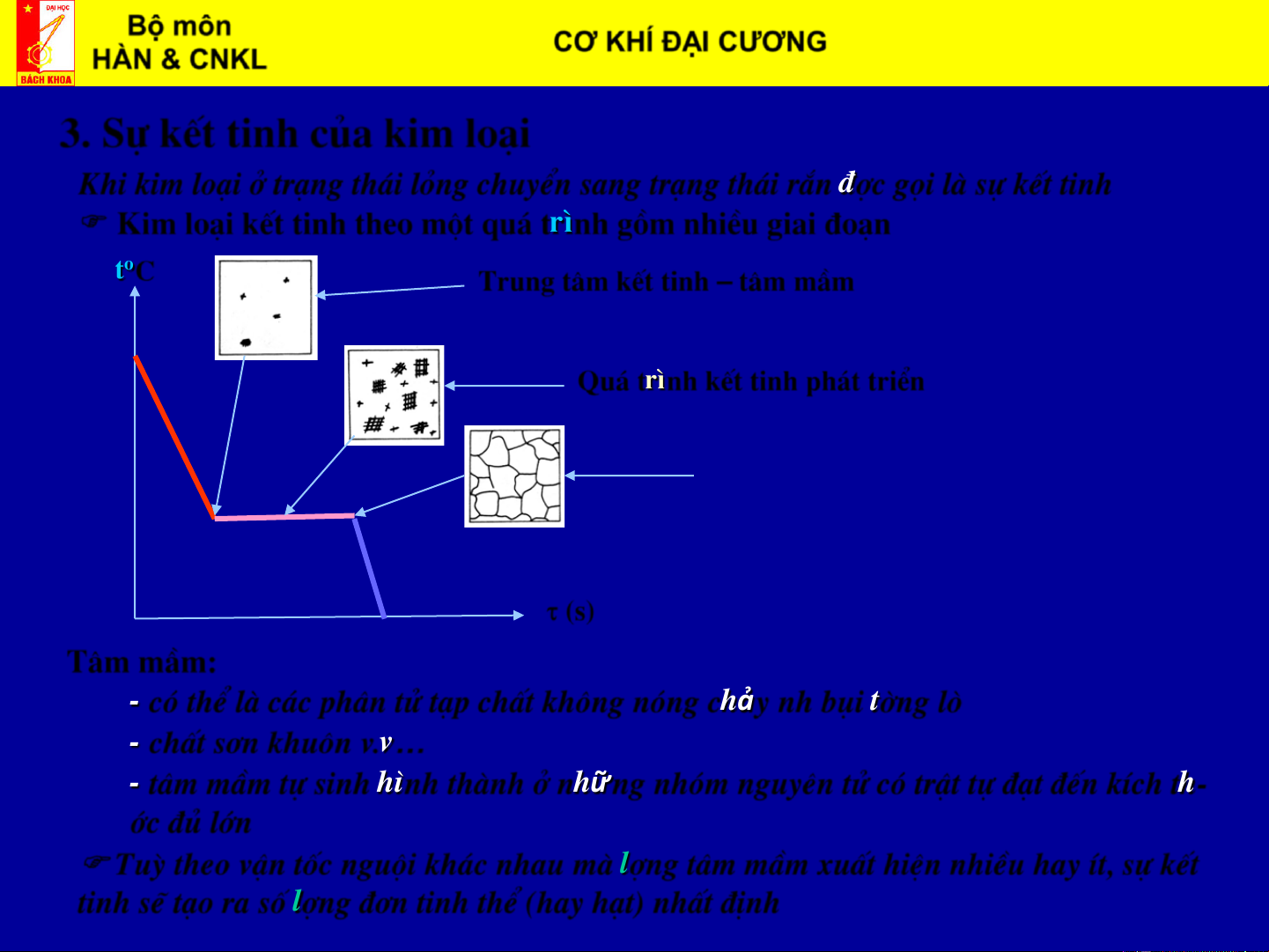 KÕt thóc qu¸ tr×nh kÕt tinh (s) T©m mÇm: