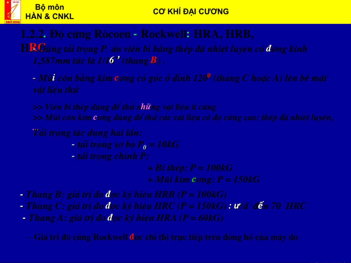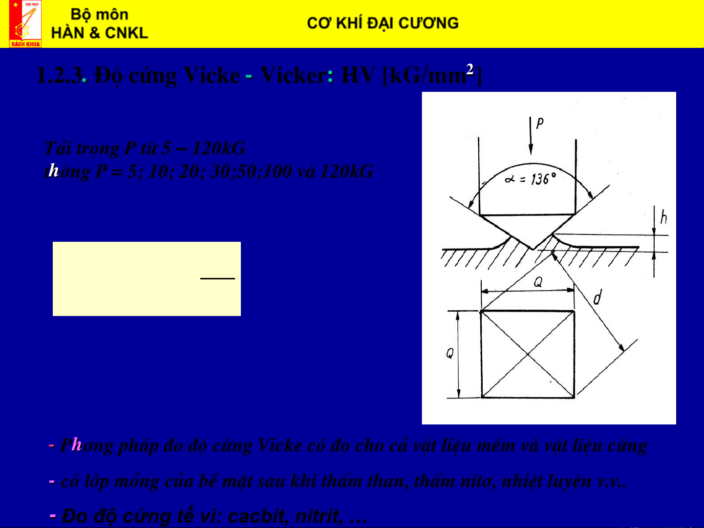 - Đo độ cứng tế vi: cacbit, nitrit, … Bộ môn CƠ KHÍ ĐẠI CƯƠNG Biên soạn: HÀN & CNKL ThS. Vũ Đình Toại