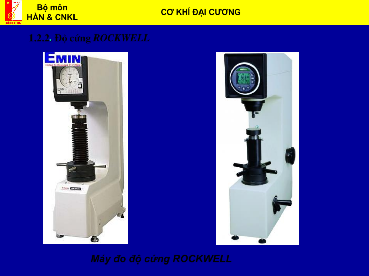 Máy đo độ cứng ROCKWELL Bộ môn CƠ KHÍ ĐẠI CƯƠNG Biên soạn: HÀN & CNKL ThS. Vũ Đình Toại