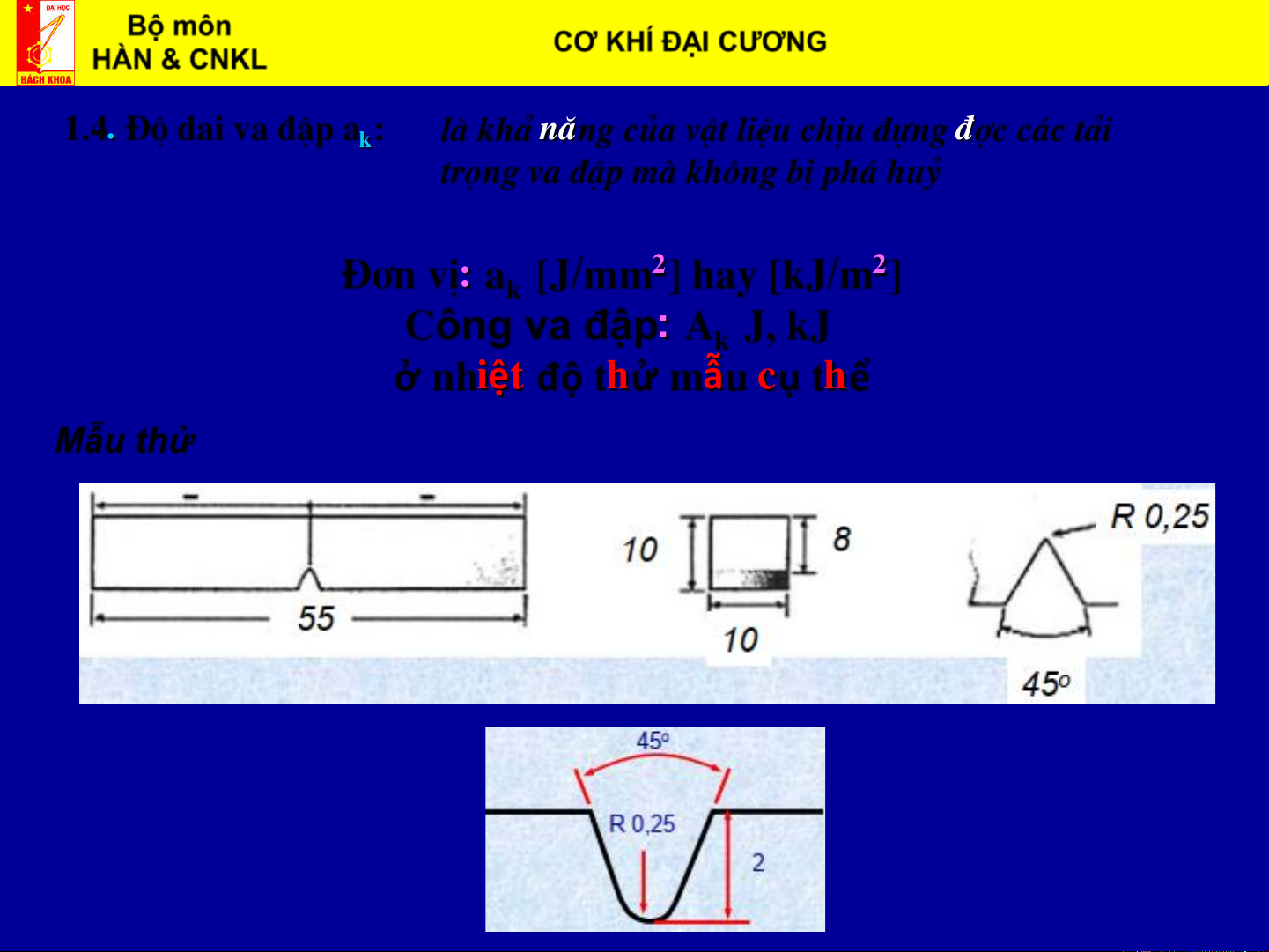 ở nhiệt độ thử mẫu cụ thể Mẫu thử Bộ môn CƠ KHÍ ĐẠI CƯƠNG Biên soạn: HÀN & CNKL ThS. Vũ Đình Toại