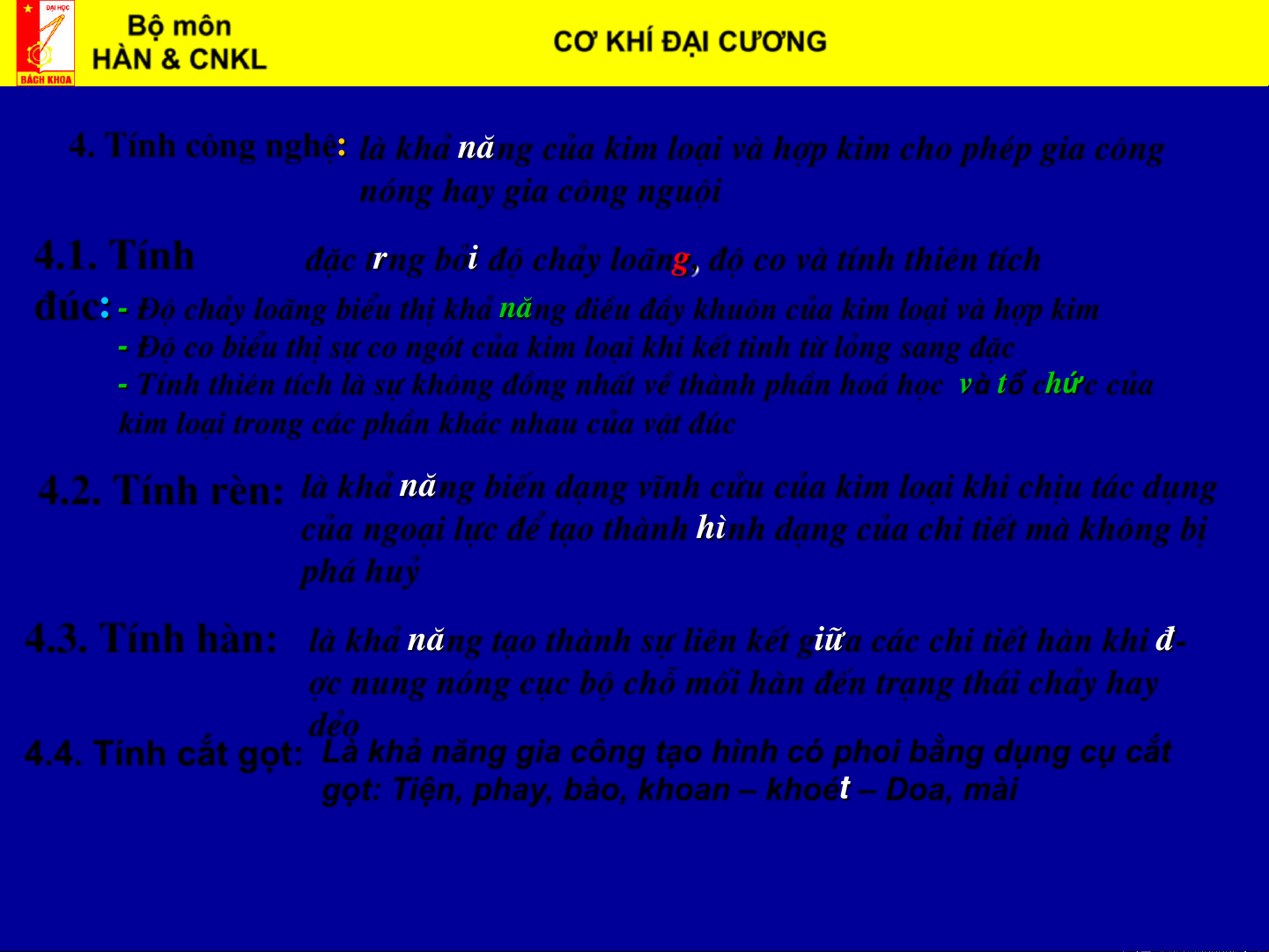 4. TÝnh c«ng nghÖ: lµ kh¶ n¨ng cña kim lo¹i vµ hîp kim cho phÐp gia c«ng