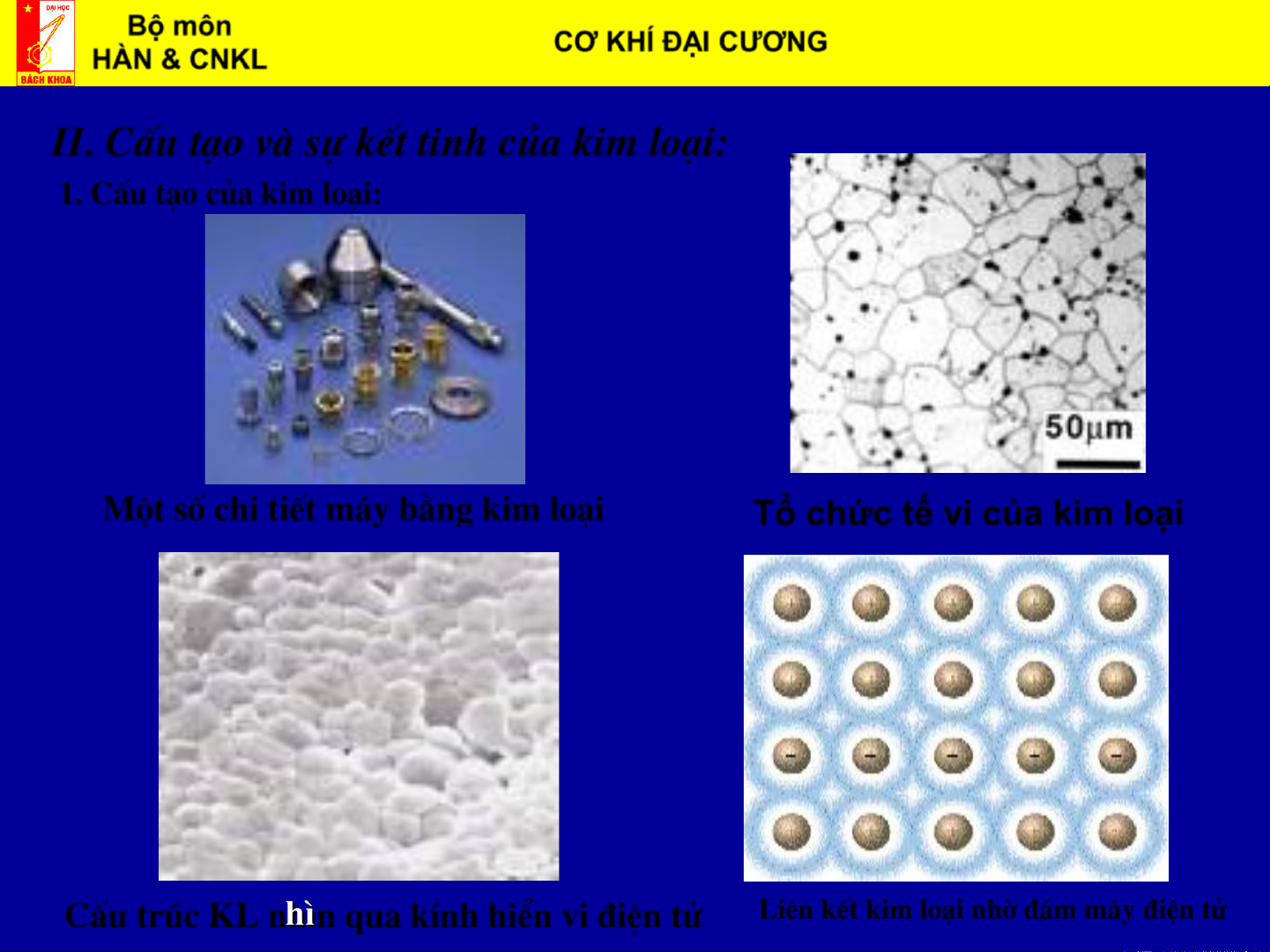 Ch¬ng II: C¸c kh¸i niÖm c¬ b¶n vÒ Kim lo¹i vµ Hîp kim Bộ môn CƠ KHÍ ĐẠI CƯƠNG Biên soạn: HÀN & CNKL ThS. Vũ Đình Toại